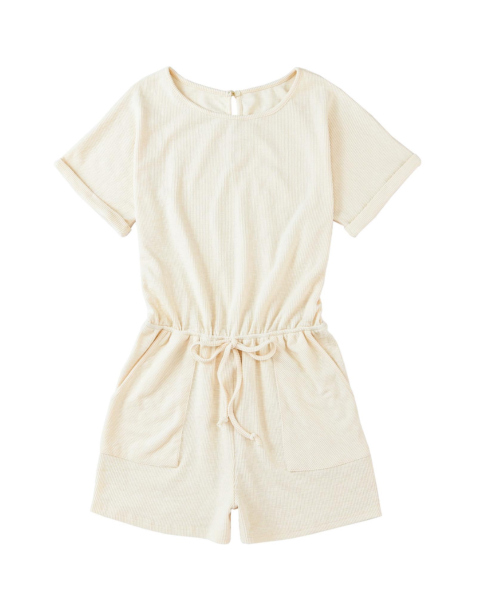 Azura Exchange Beige Ribbed Elastic Waist Romper – M