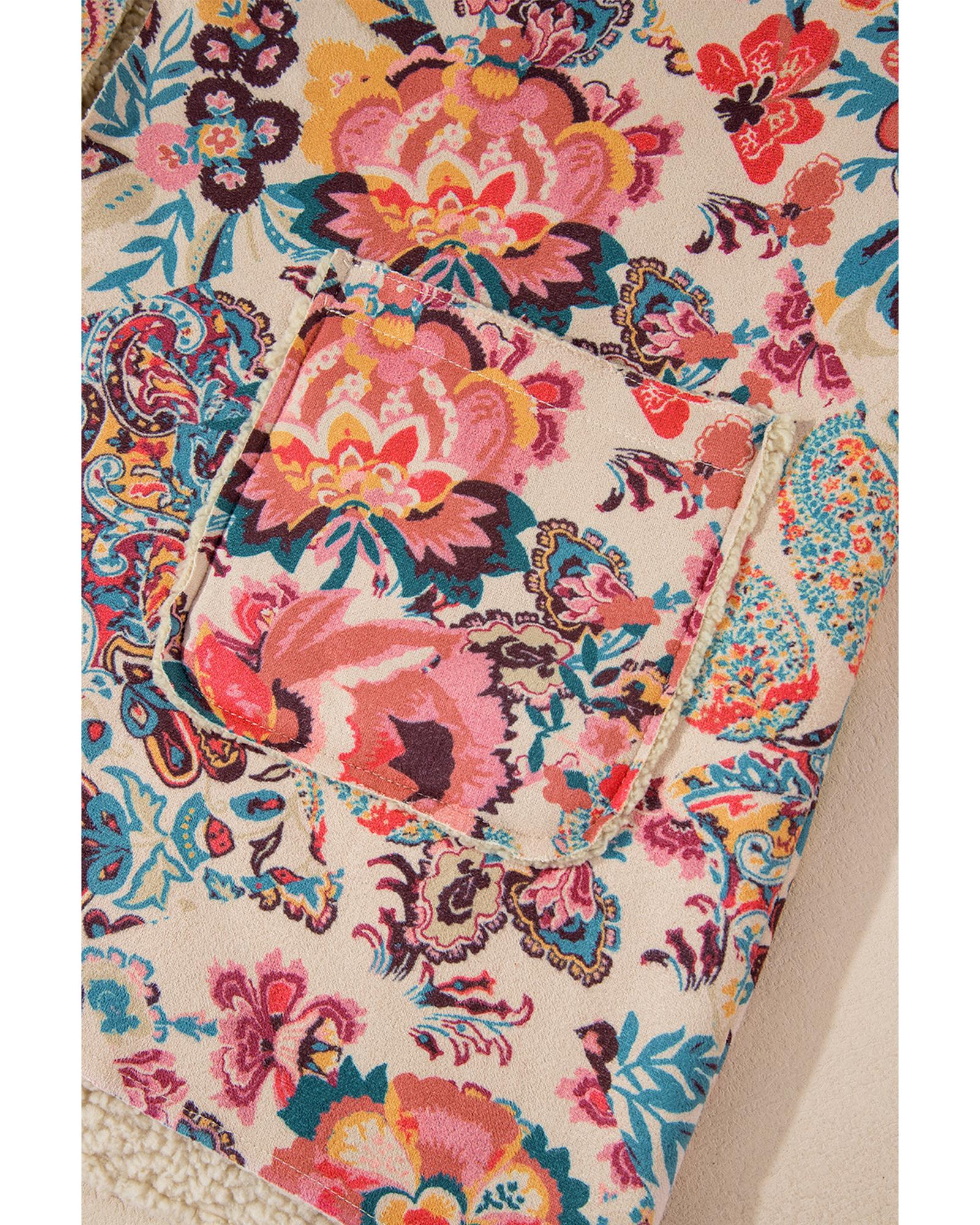 Azura Exchange Beige Vintage Paisley Floral Printed Sherpa Lined Hooded Jacket – S