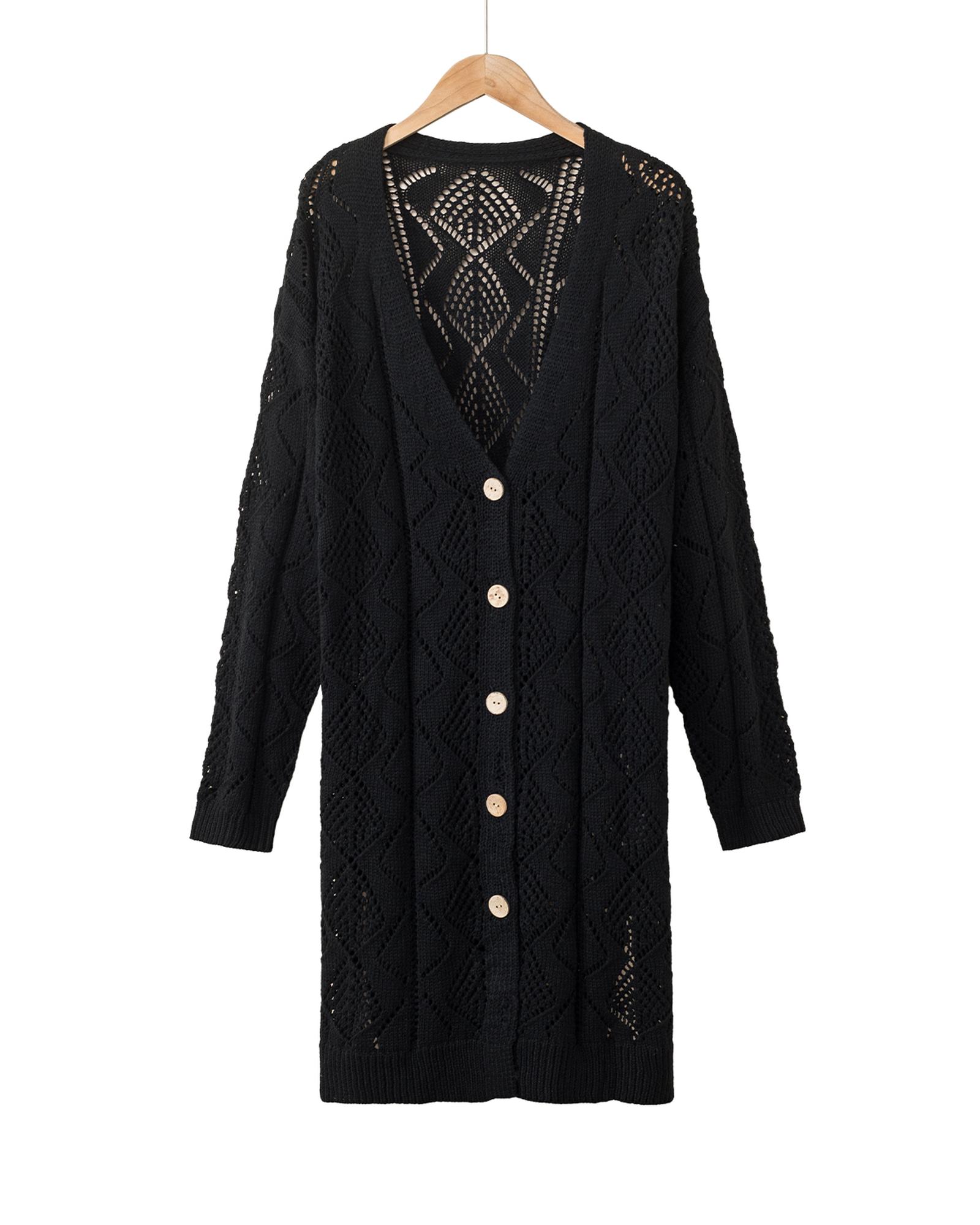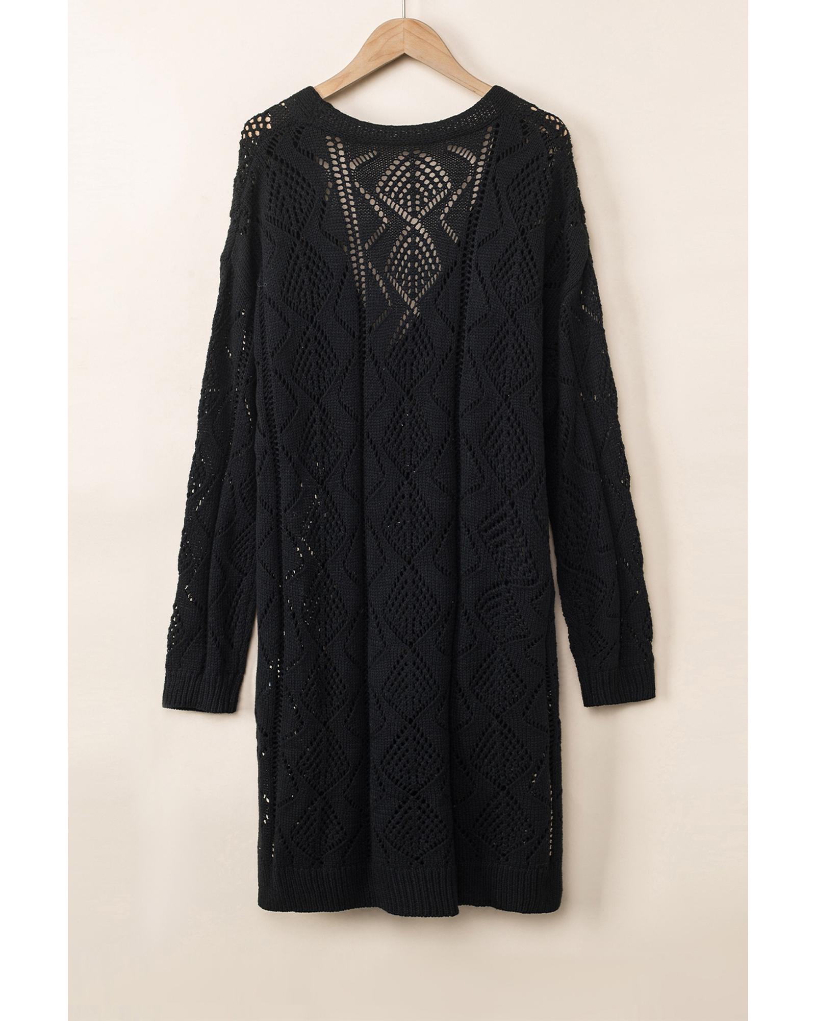 Azura Exchange Black Hollow-out Openwork Knit Cardigan – XL