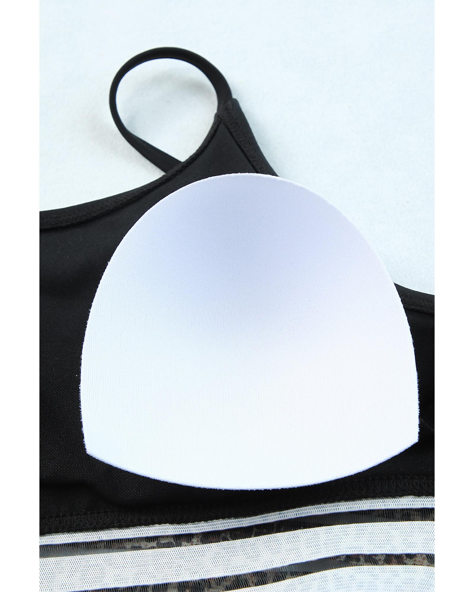 Azura Exchange Black Rose Leopard Mesh Trim 2pcs Bikini Swimsuit – L