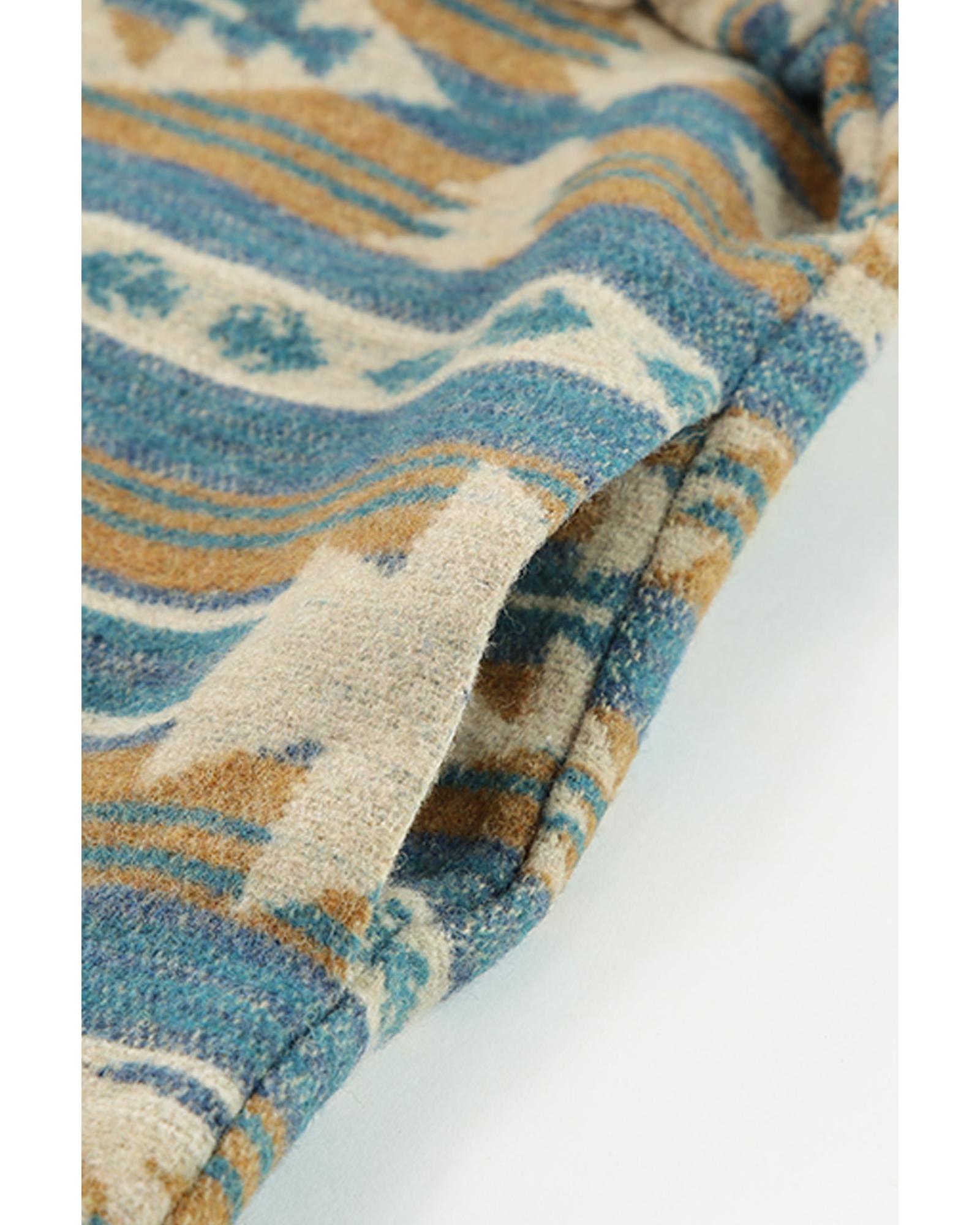 Azura Exchange Blue Western Aztec Print Button Flap Pocket Shacket – S
