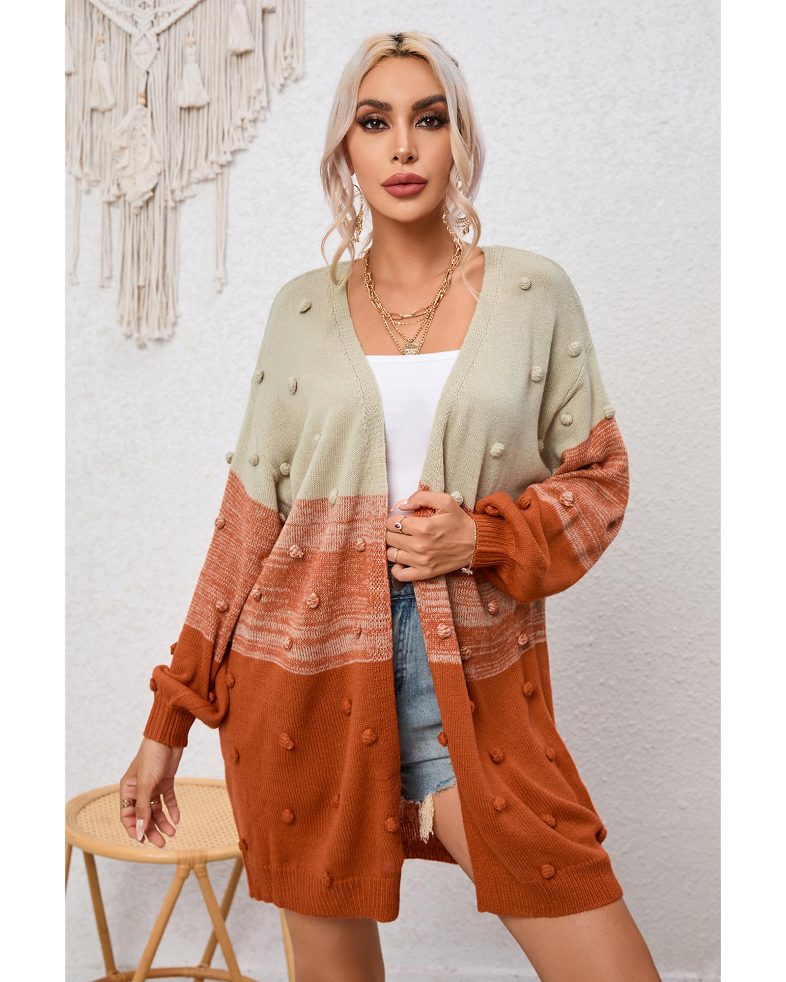 Azura Exchange Brown Pompom Color Block Open Front Cardigan – S
