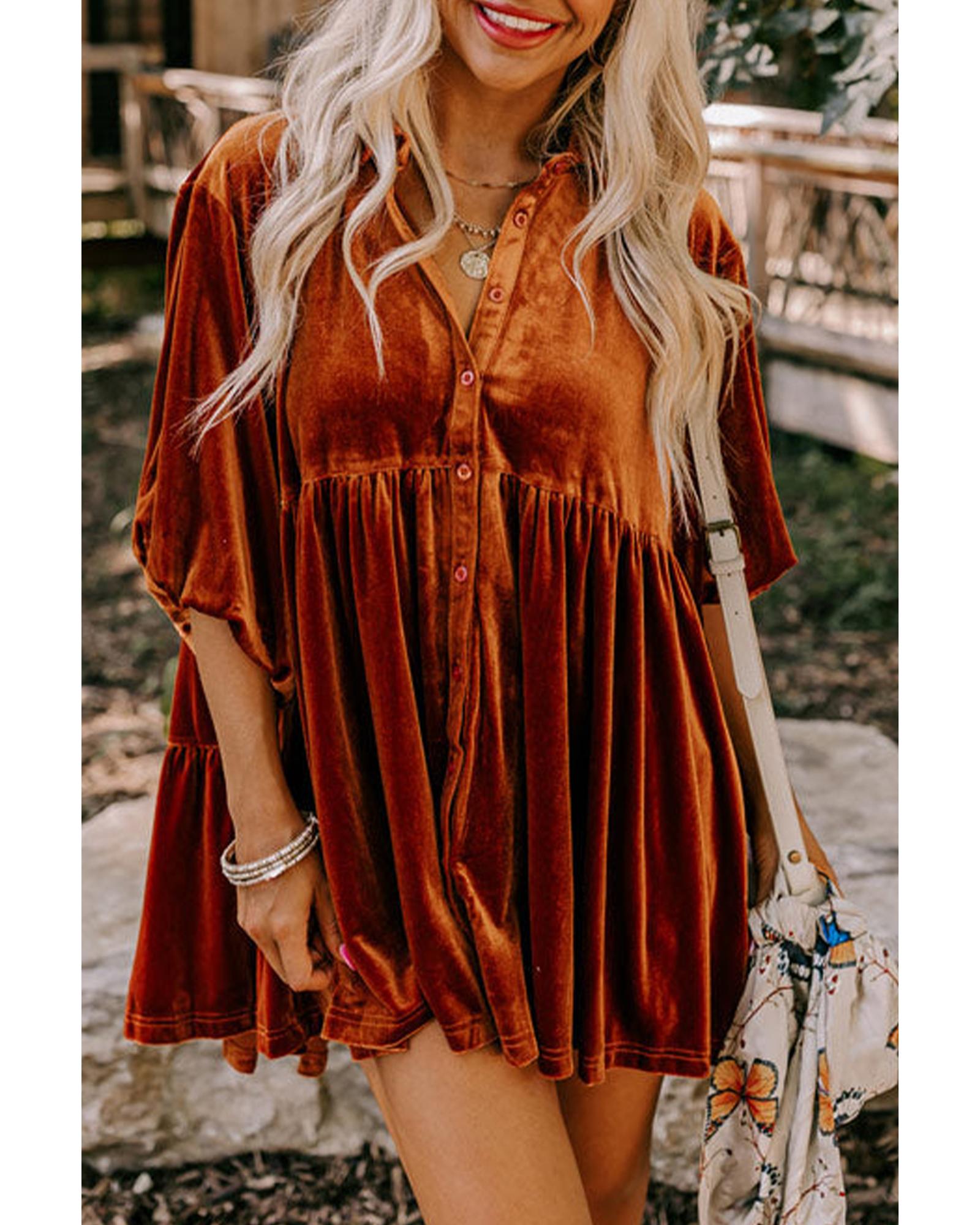 Azura Exchange Chestnut 3/4 Sleeve Tunic Babydoll Velvet Shirt – S