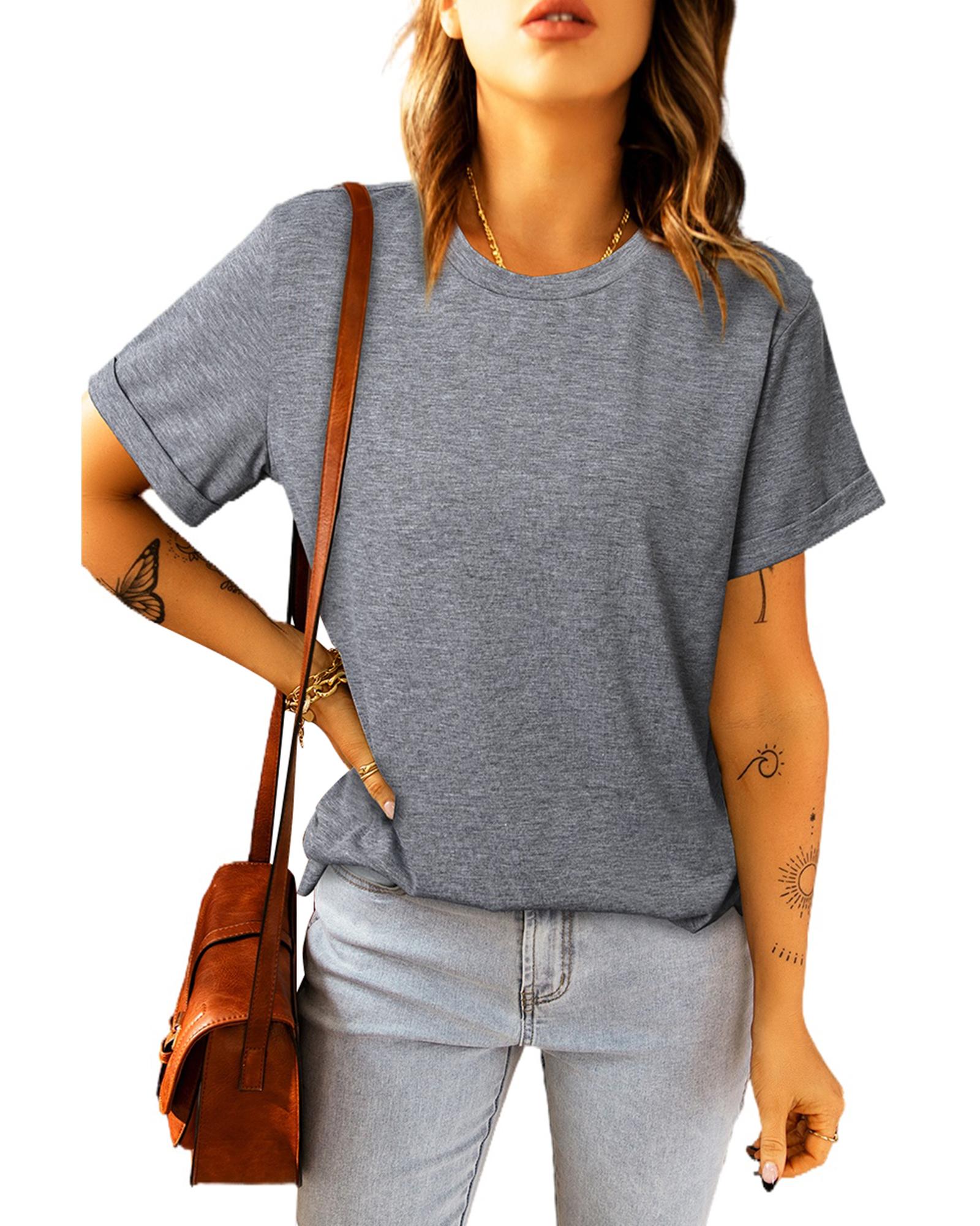 - Features a classic crew neck and short sleeves for a relaxed, breezy feel