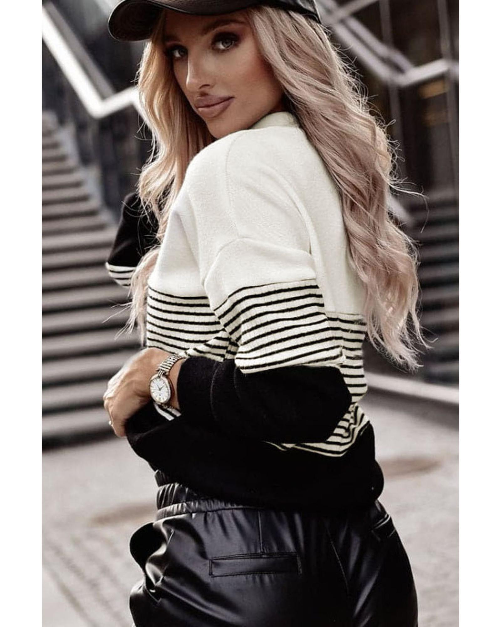 This contrast colorblock knit top combines style and versatility, making it suitable for various occasions. Its sleek silhouette and comfortable fit make it a must-have addition to any wardrobe. Crafted from quality materials, it offers durability and a flattering look that can be paired easily with different outfits.