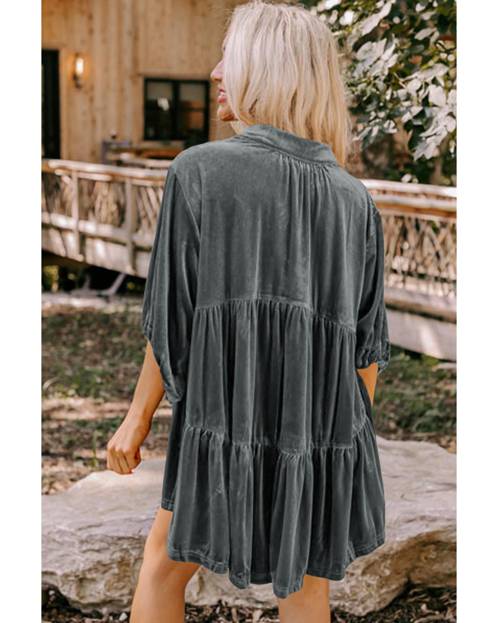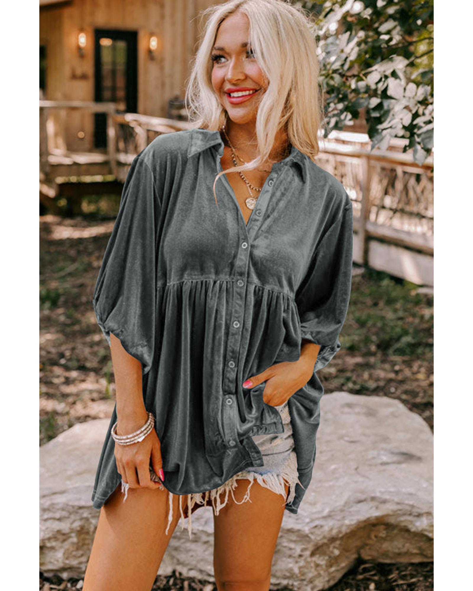 Azura Exchange Dark Grey 3/4 Sleeve Tunic Babydoll Velvet Shirt – M