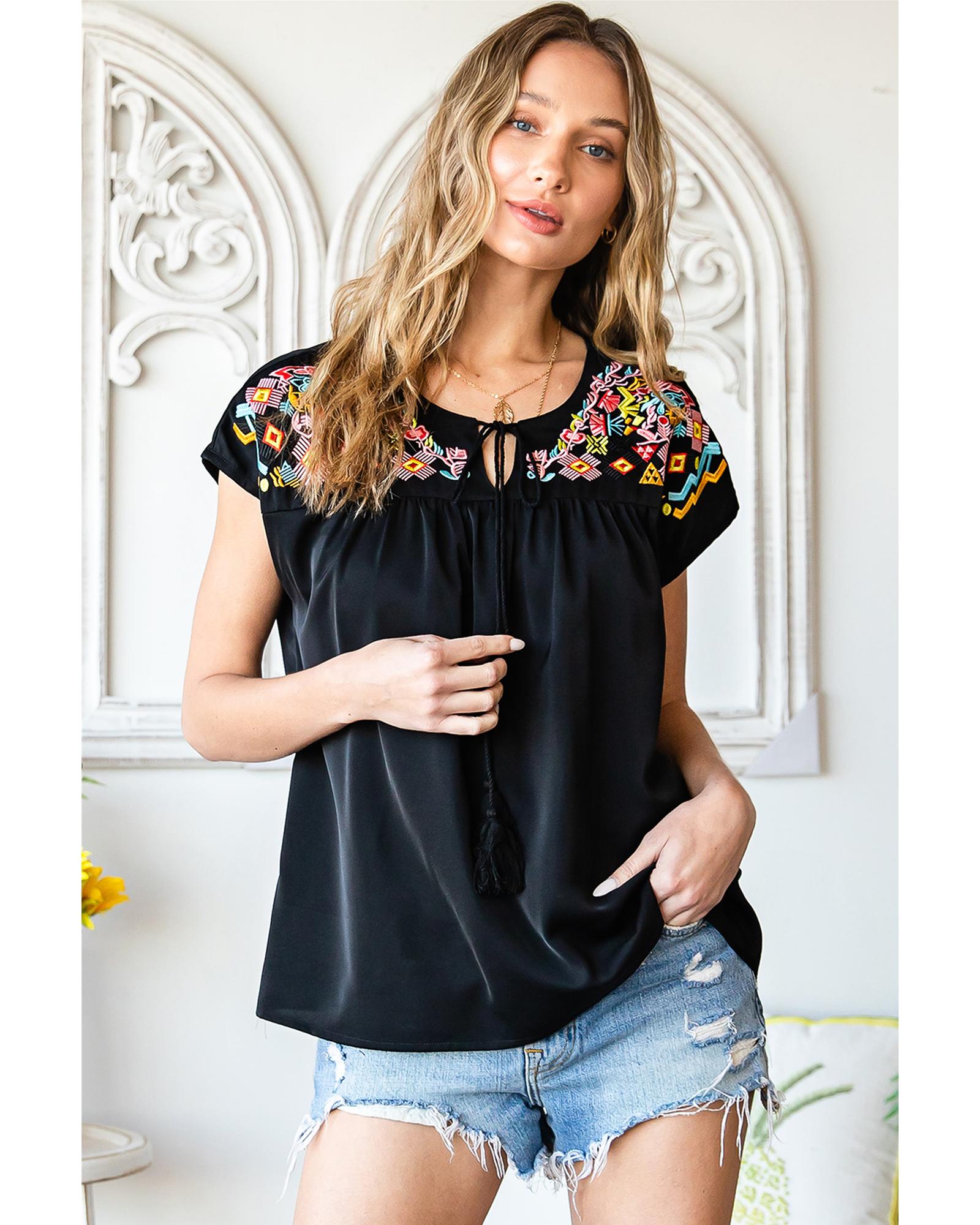Azura Exchange Embroidered Short Sleeve Blouse – S