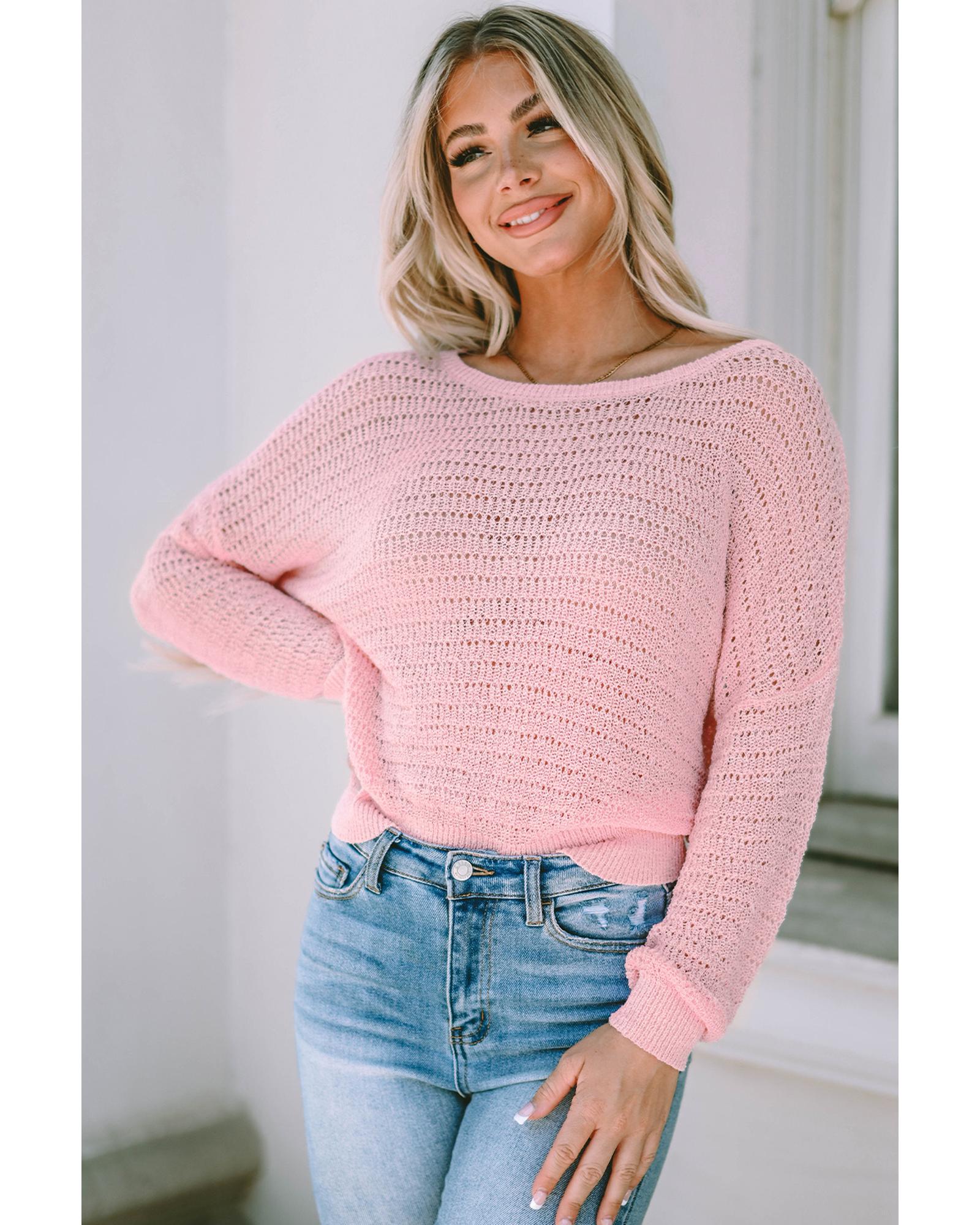 This eyelet knit long sleeve top features a stylish round neck design and eyelet details, offering a unique and versatile look suitable for both casual and formal occasions. Crafted from high-quality materials, it provides comfort and warmth with its long sleeves.