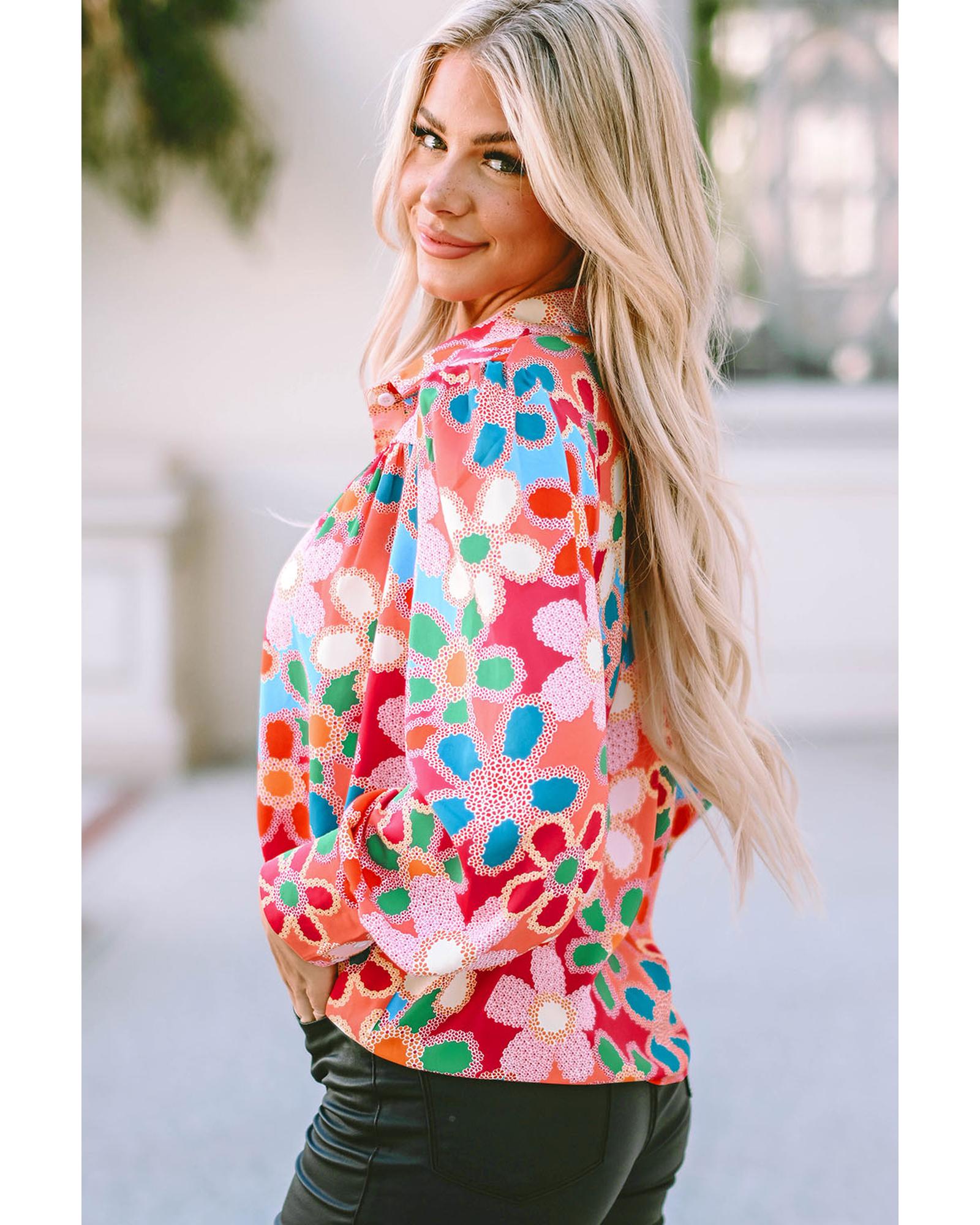 This floral print bubble sleeve shirt offers a stylish and contemporary look, perfect for adding a refreshing twist to your wardrobe. Its elegant design and trendy bubble sleeves make it suitable for various occasions, providing a feminine and fashionable appearance.