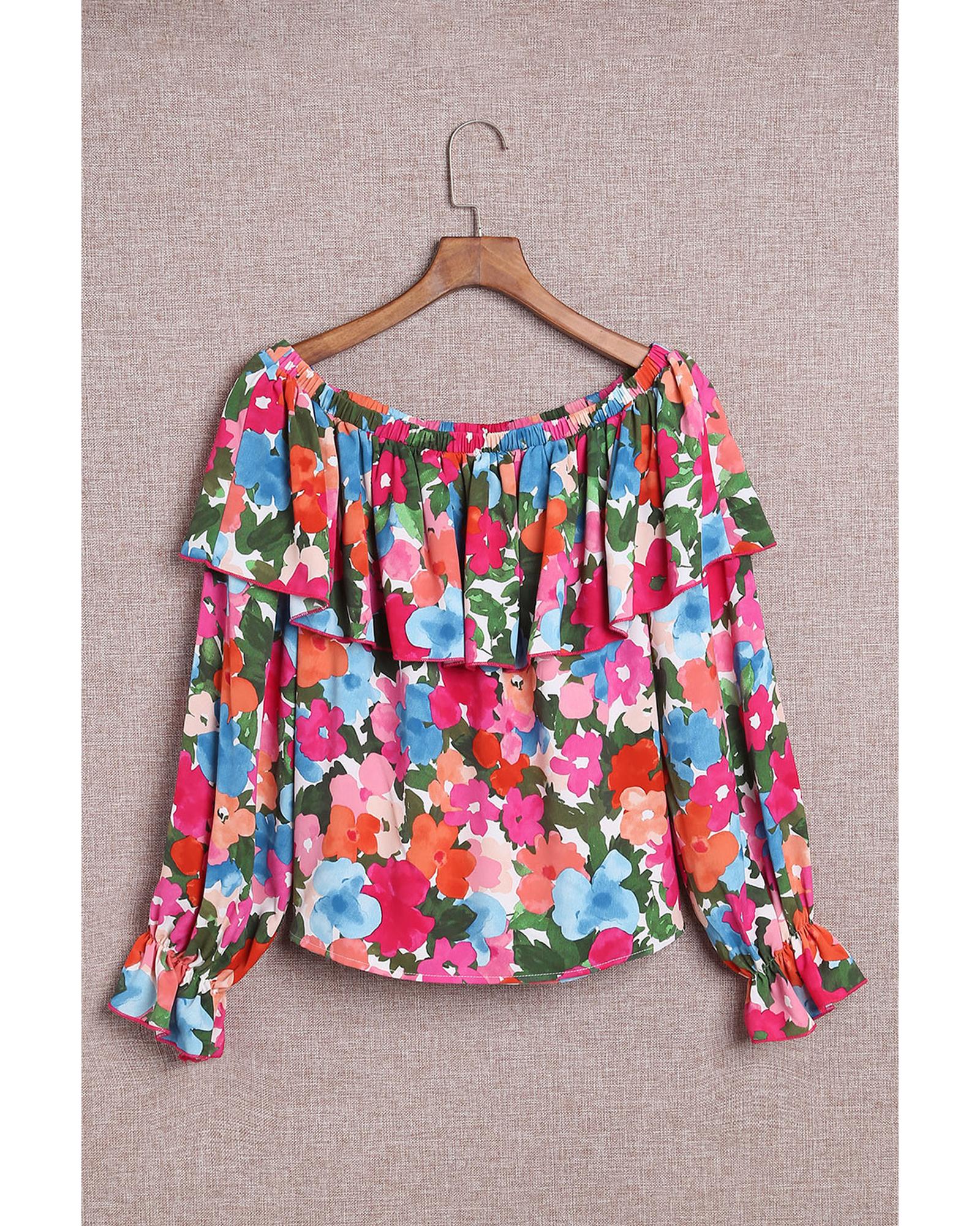 - Stylish and feminine floral print ruffled off-shoulder blouse