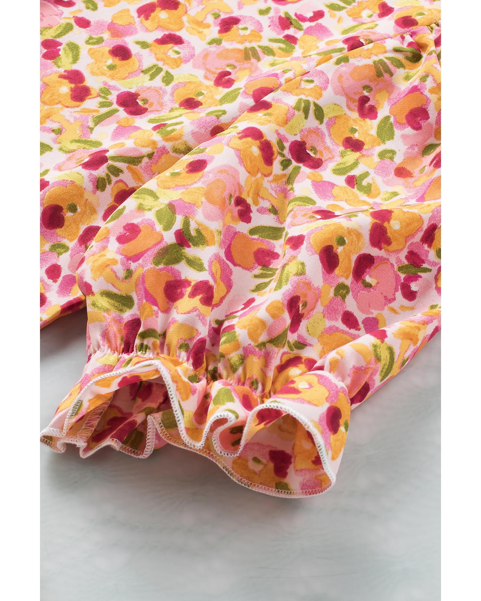 This floral ruffle blouse features a stylish mock neck design with charming ruffle details, perfect for creating a trendy and relaxed look. Made from high-quality materials, it offers comfort and durability, making it suitable for various occasions. The short sleeves add to its casual appeal, while the boho floral print enhances its fashionable appearance. This versatile piece can be paired effortlessly with jeans or a skirt for a chic outfit.