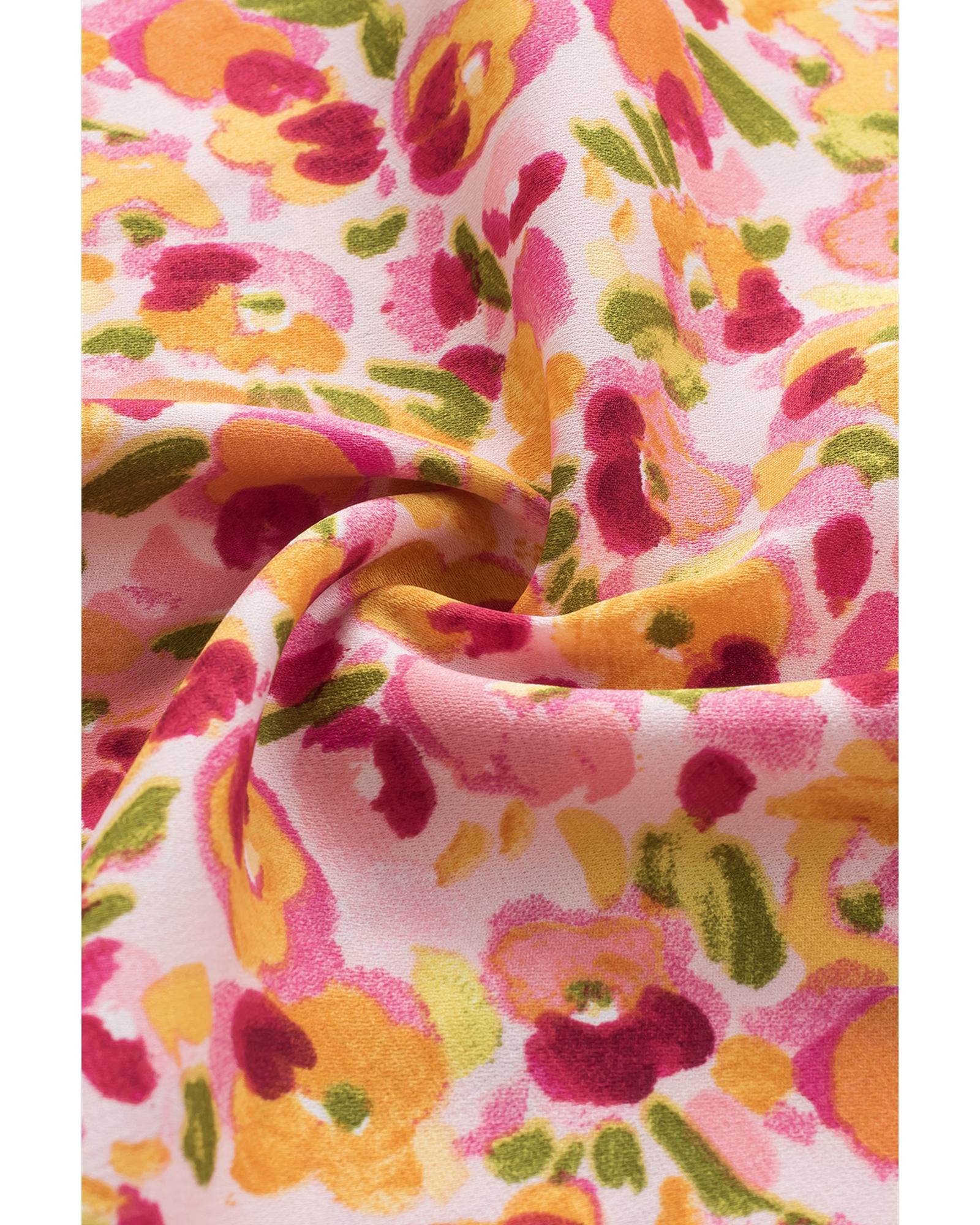 This floral ruffle blouse features a stylish mock neck design with charming ruffle details, perfect for creating a trendy and relaxed look. Made from high-quality materials, it offers comfort and durability, making it suitable for various occasions. The short sleeves add to its casual appeal, while the boho floral print enhances its fashionable appearance. It can be easily paired with jeans or a skirt for a chic outfit.