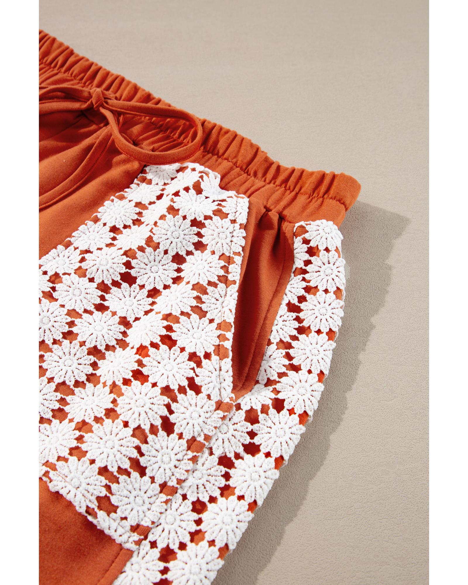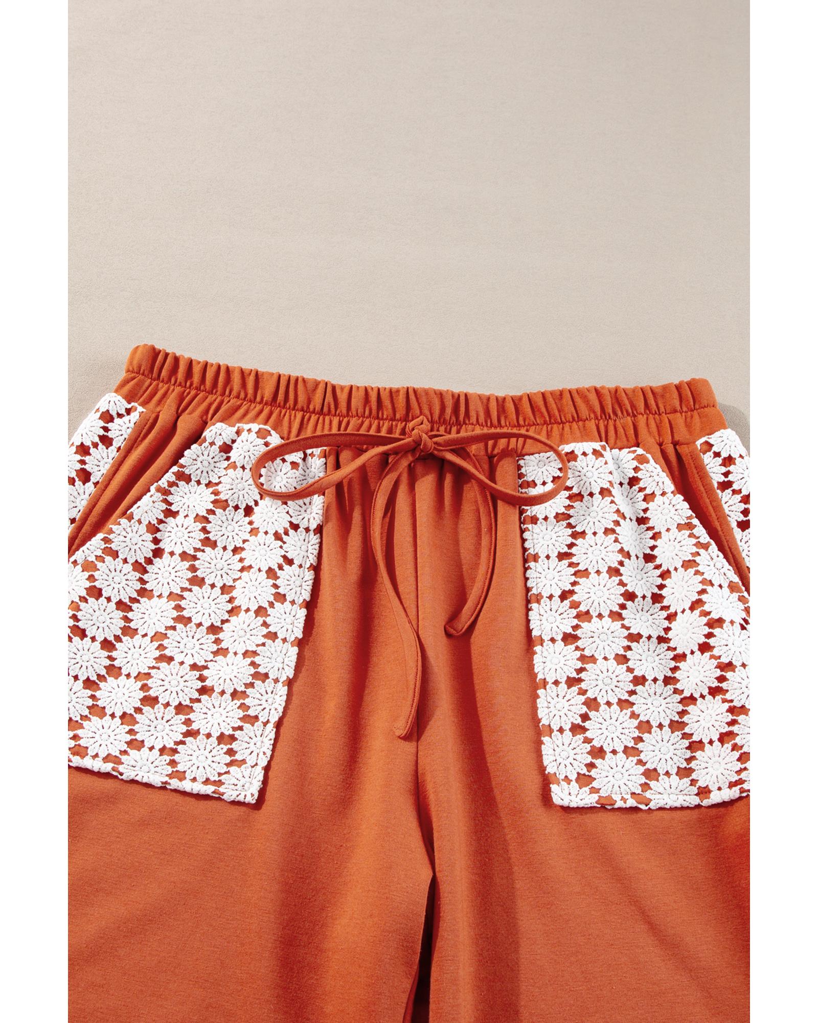 Azura Exchange Gold Flame Plus Size Floral Crochet Patch Drawstring Wide Leg Pants – 3X
