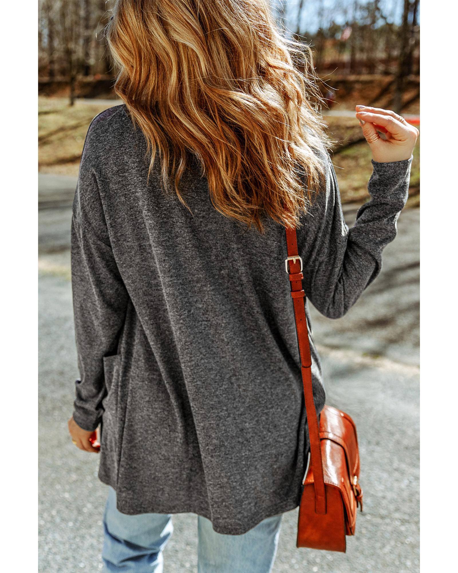 Azura Exchange Gray Heather Knit Pocketed Button Front Cardigan – S