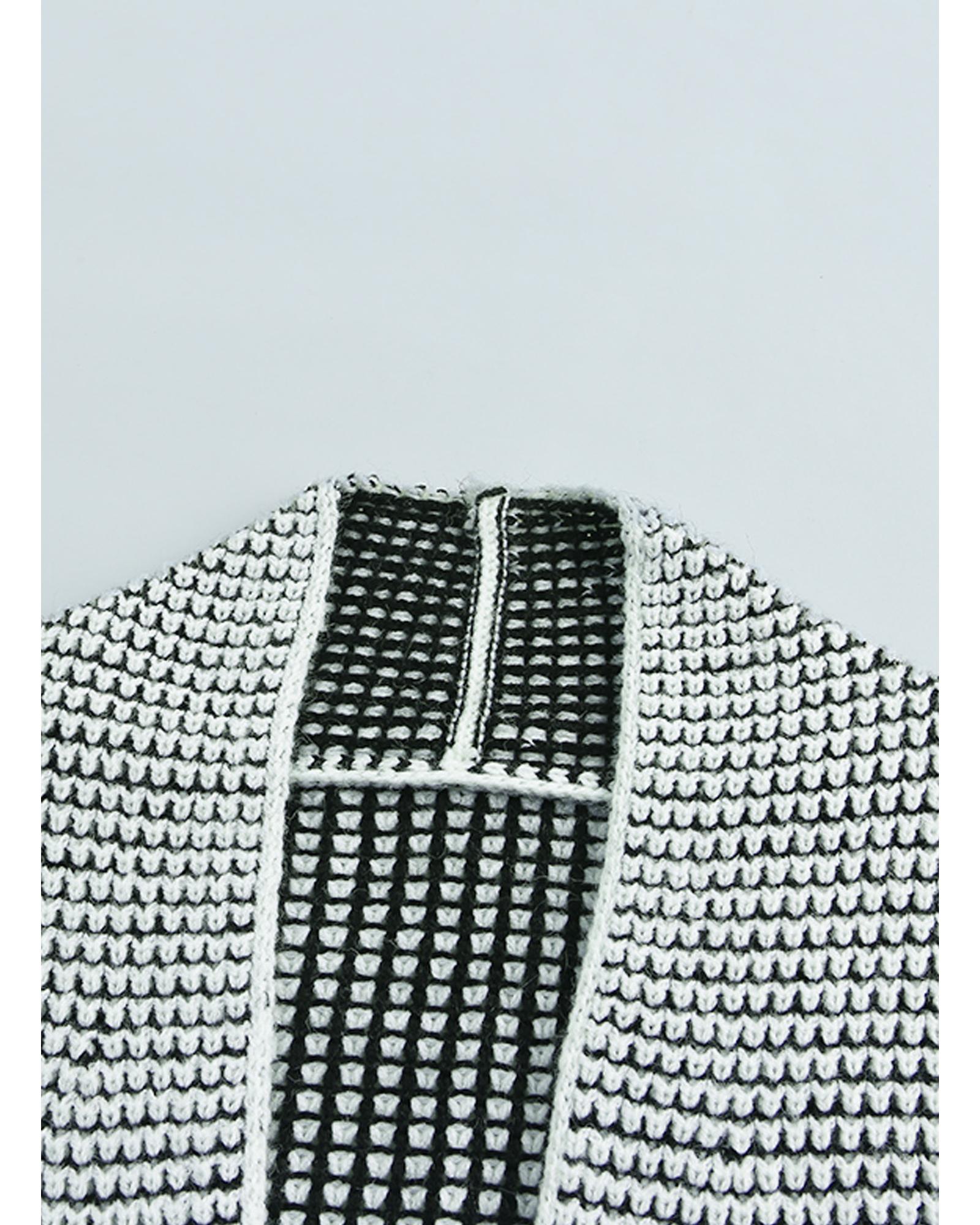 Azura Exchange Gray Plaid Knitted Long Open Front Cardigan – XL