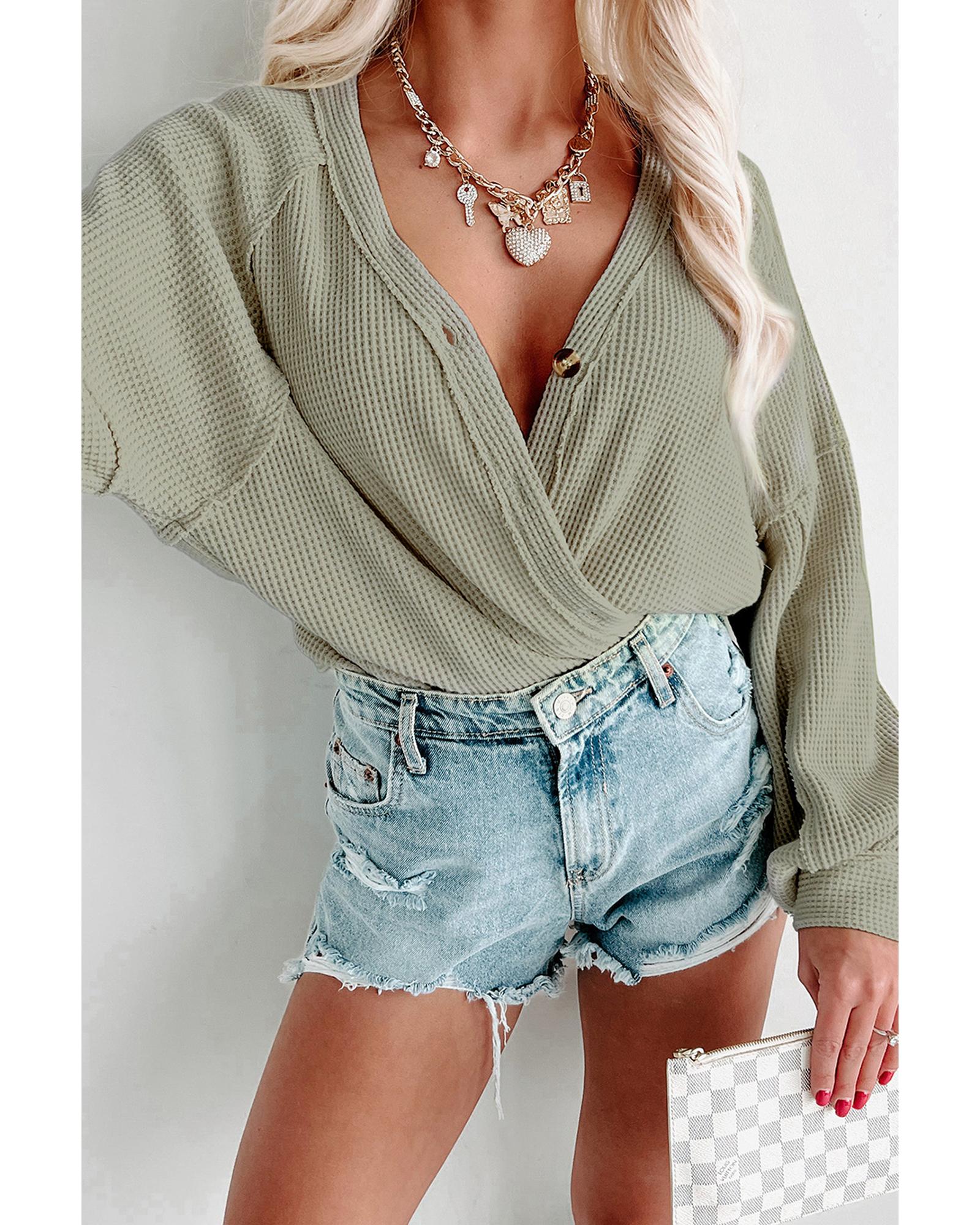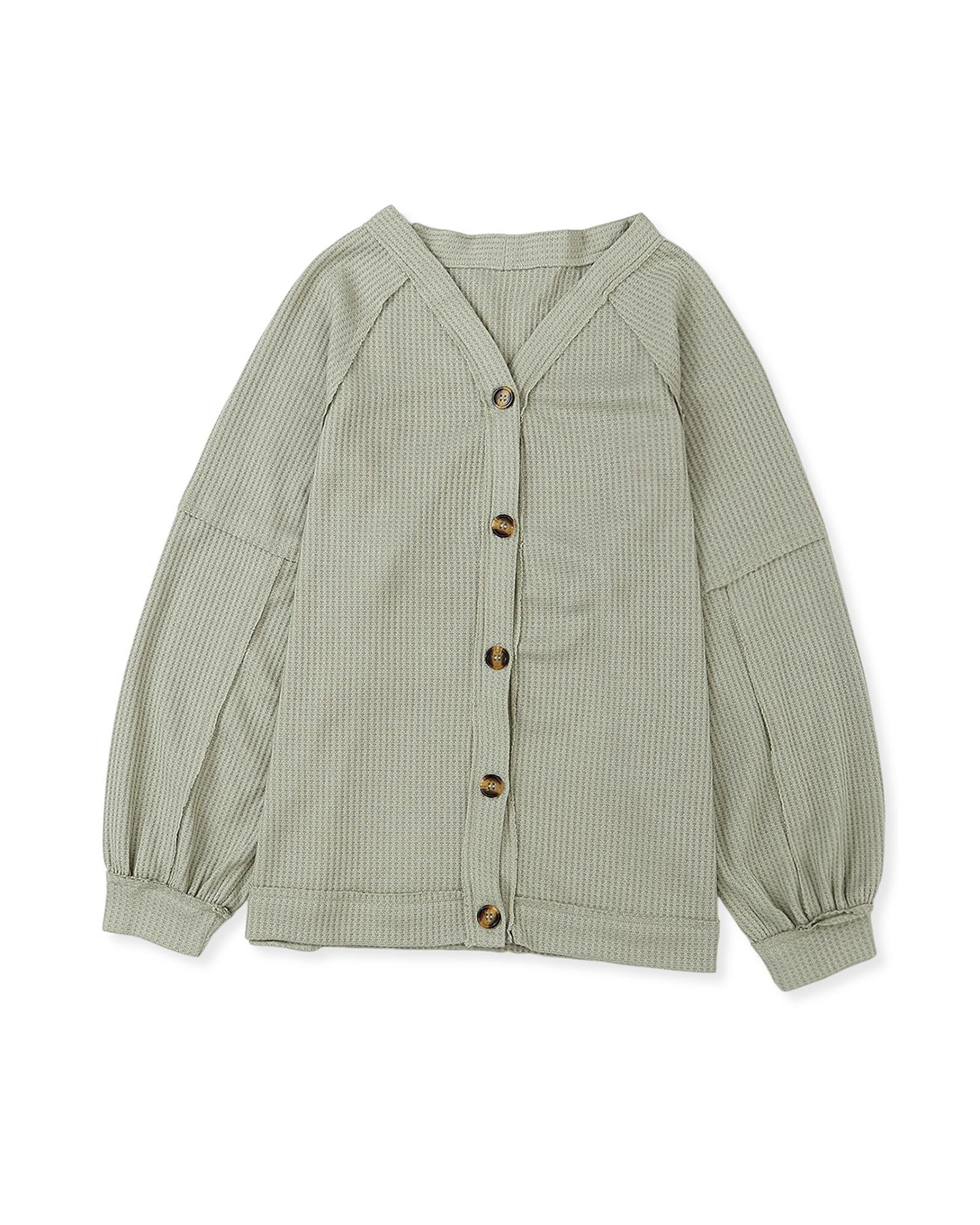 Azura Exchange Green Exposed Seam Buttons Front Waffle Knit Cardigan – L