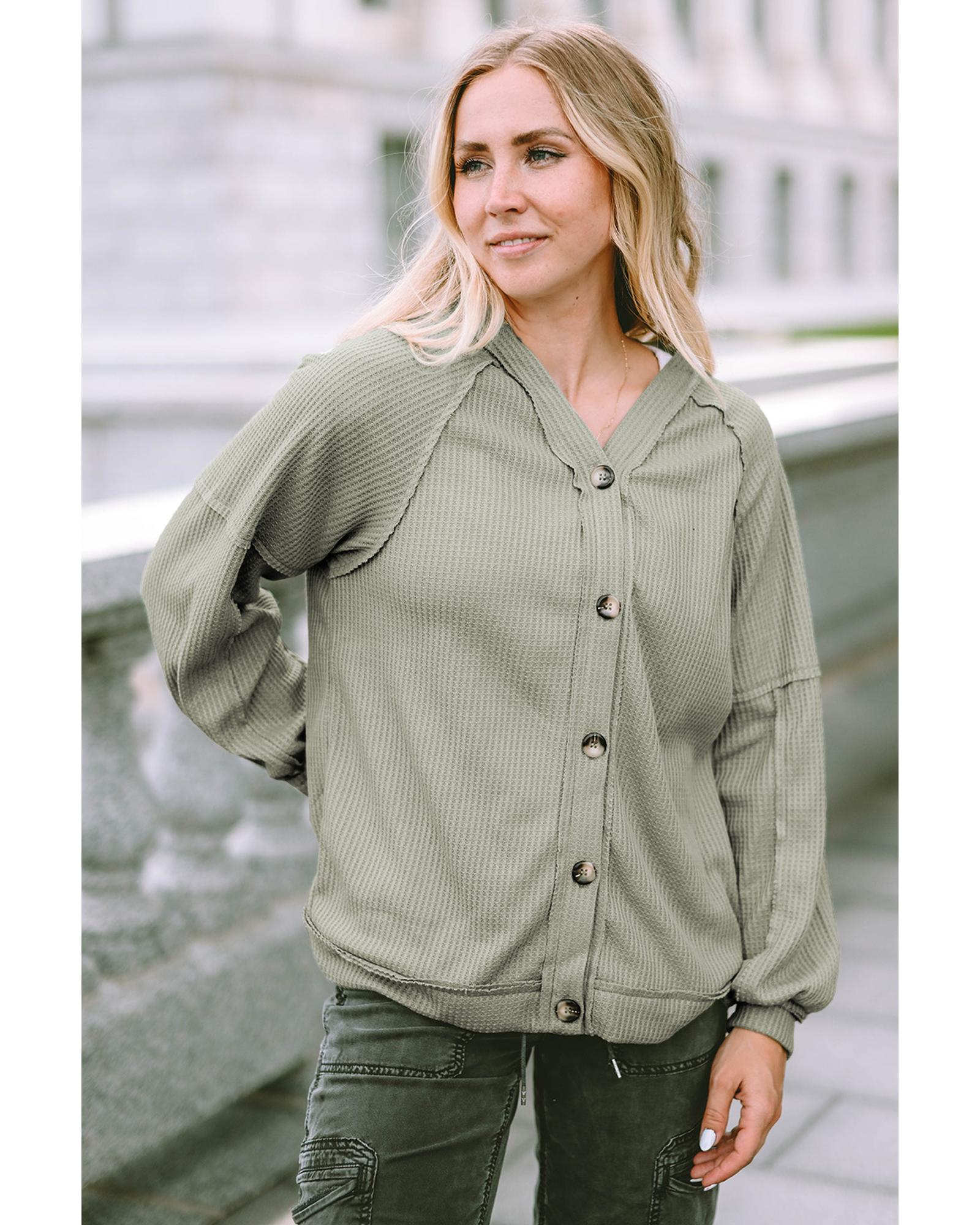 Azura Exchange Green Exposed Seam Buttons Front Waffle Knit Cardigan – S