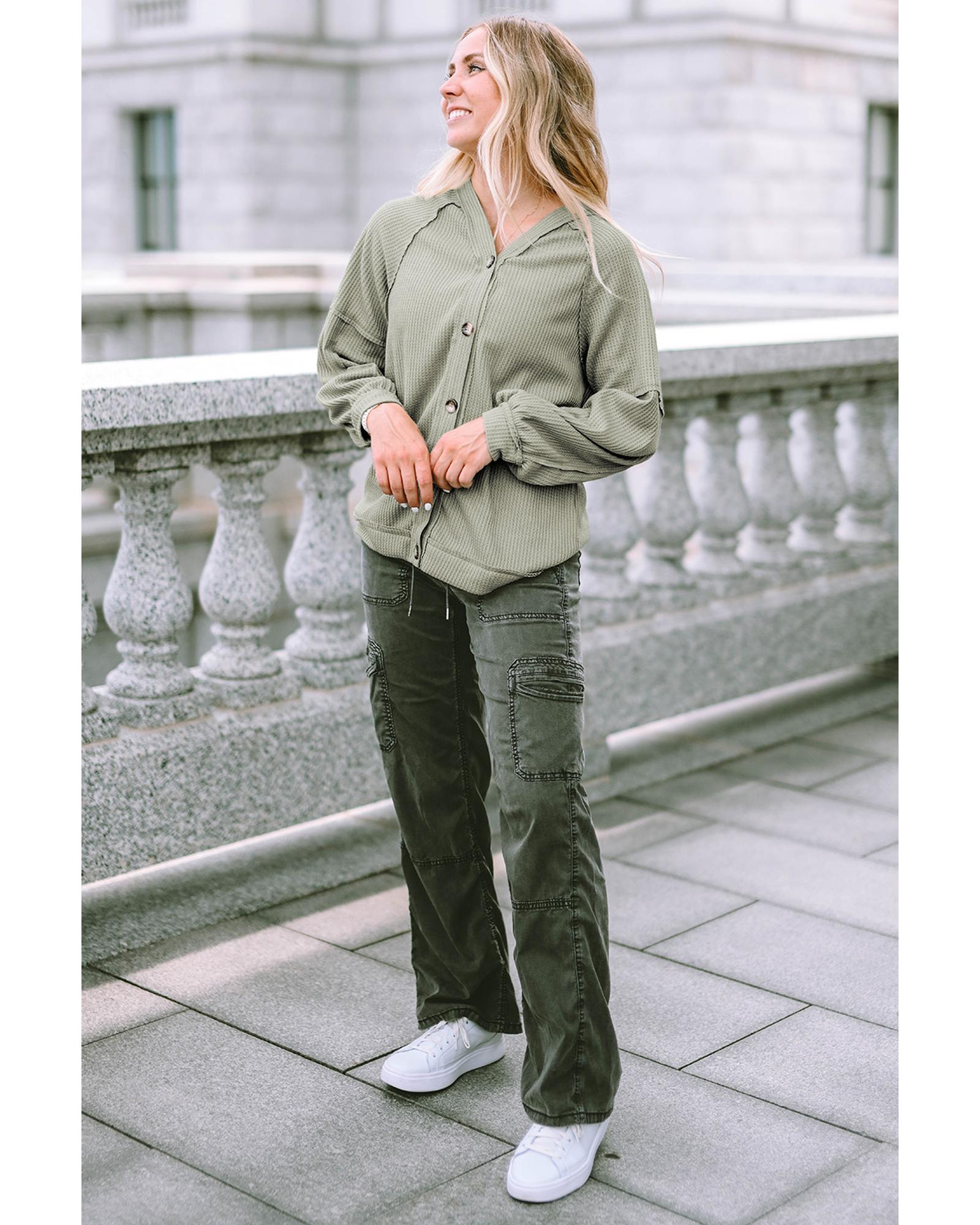 Azura Exchange Green Exposed Seam Buttons Front Waffle Knit Cardigan – XL