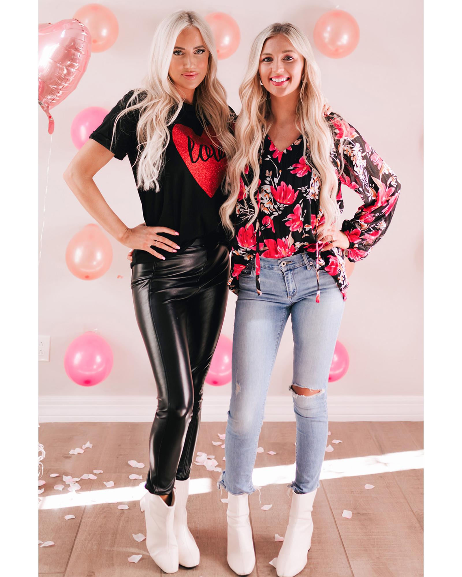This heart-shaped glitter print T-shirt combines a stylish design with comfortable materials, making it suitable for various casual occasions. Its eye-catching print and versatile style ensure it can be paired easily with different outfits.