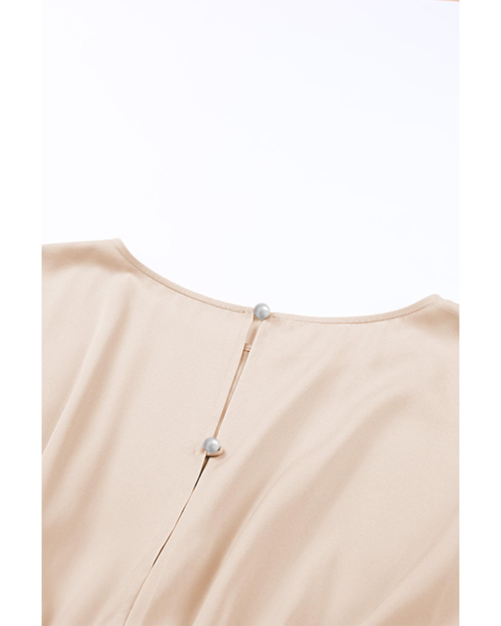 This stylish khaki romper features a sequin patchwork design and a high waist for a fashionable look. The loose fit and dolman sleeves add to its comfort and trendy appeal, making it suitable for various casual occasions.