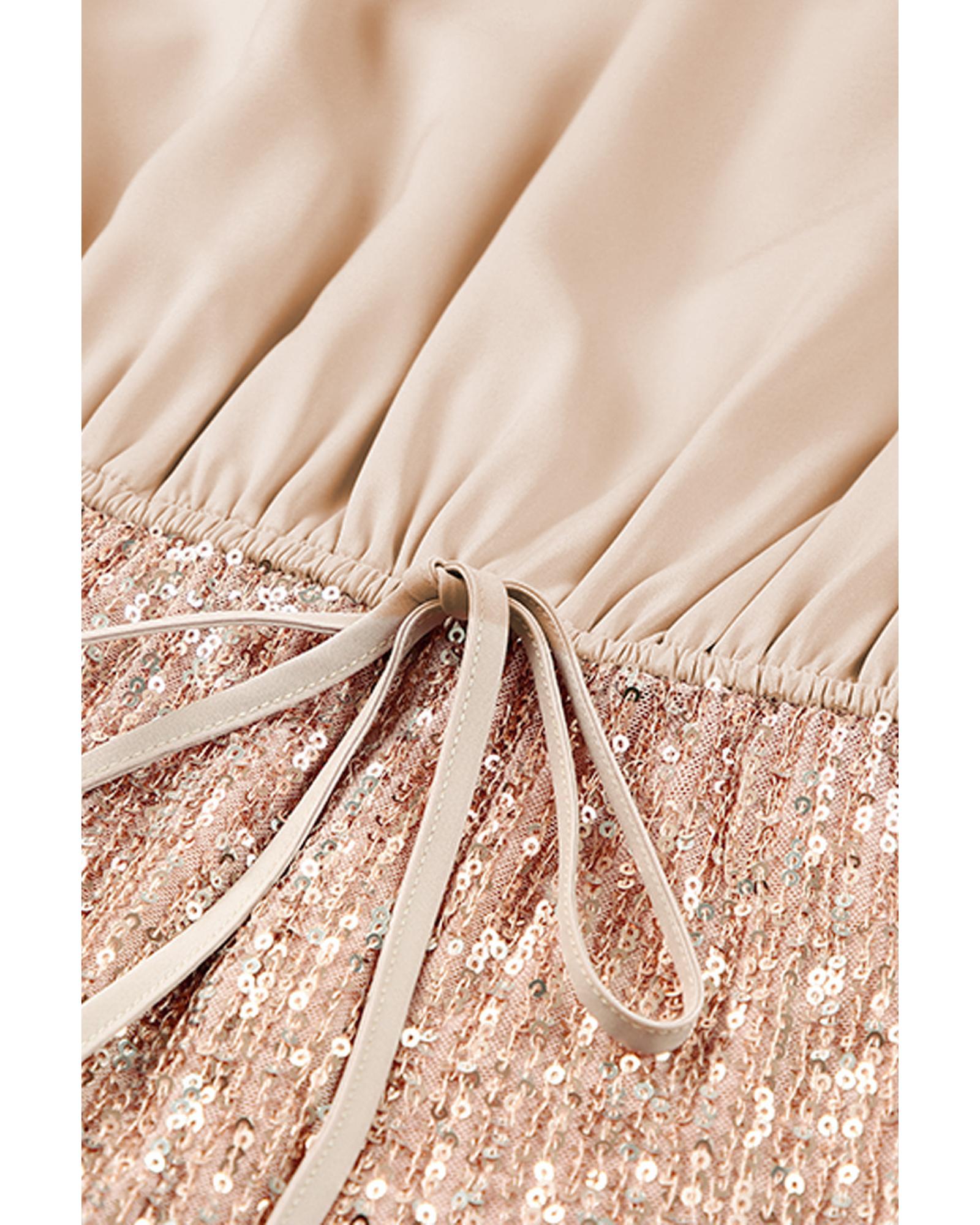 Azura Exchange Khaki Sequin Patchwork Drawstring High Waist Romper – M