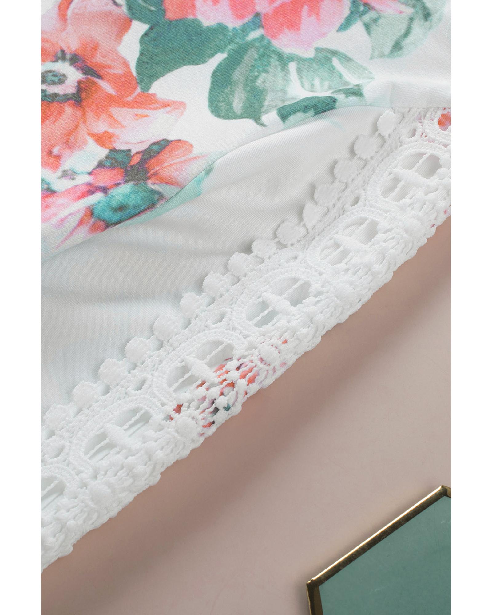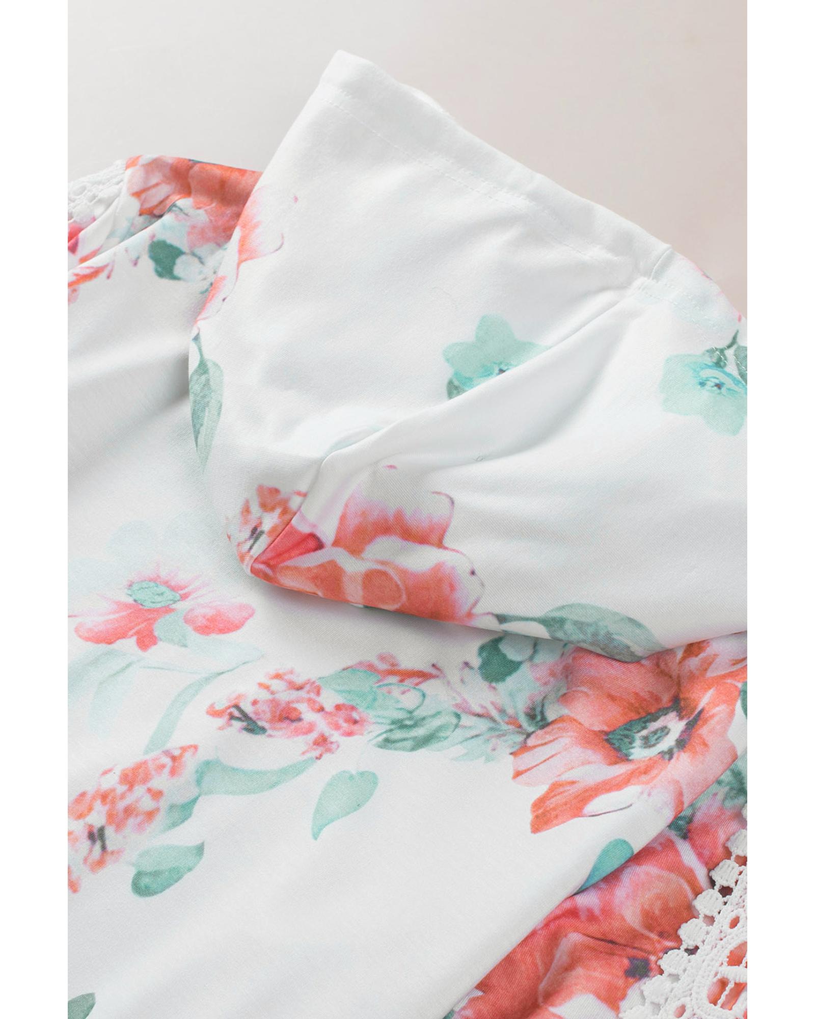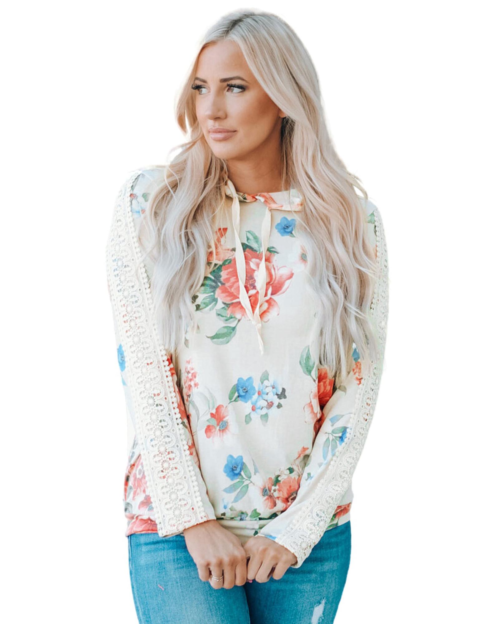 - Stylish floral print with lace contrast details on the sleeves