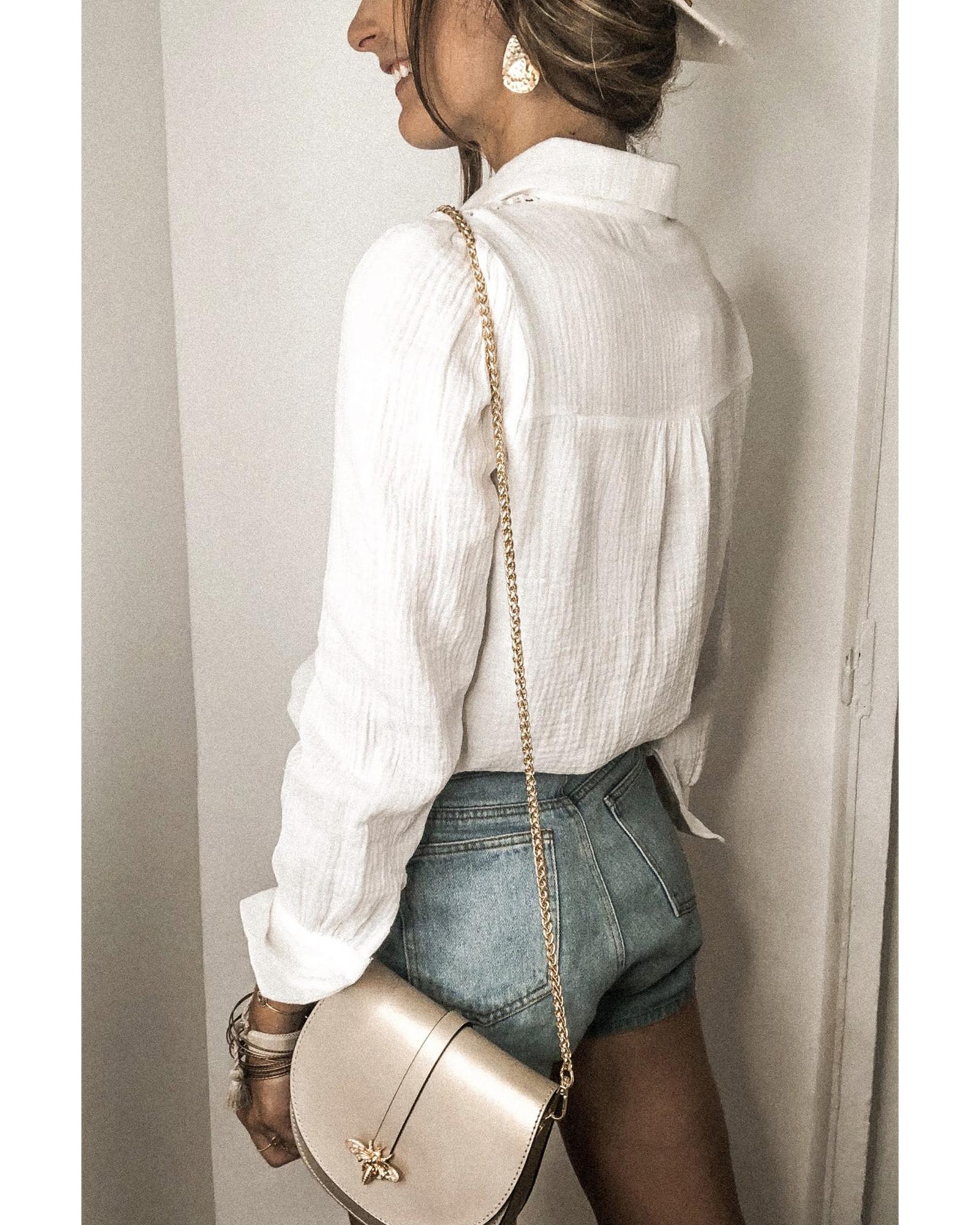 Azura Exchange Lace Hollow-out Splicing Crinkled Shirt – L