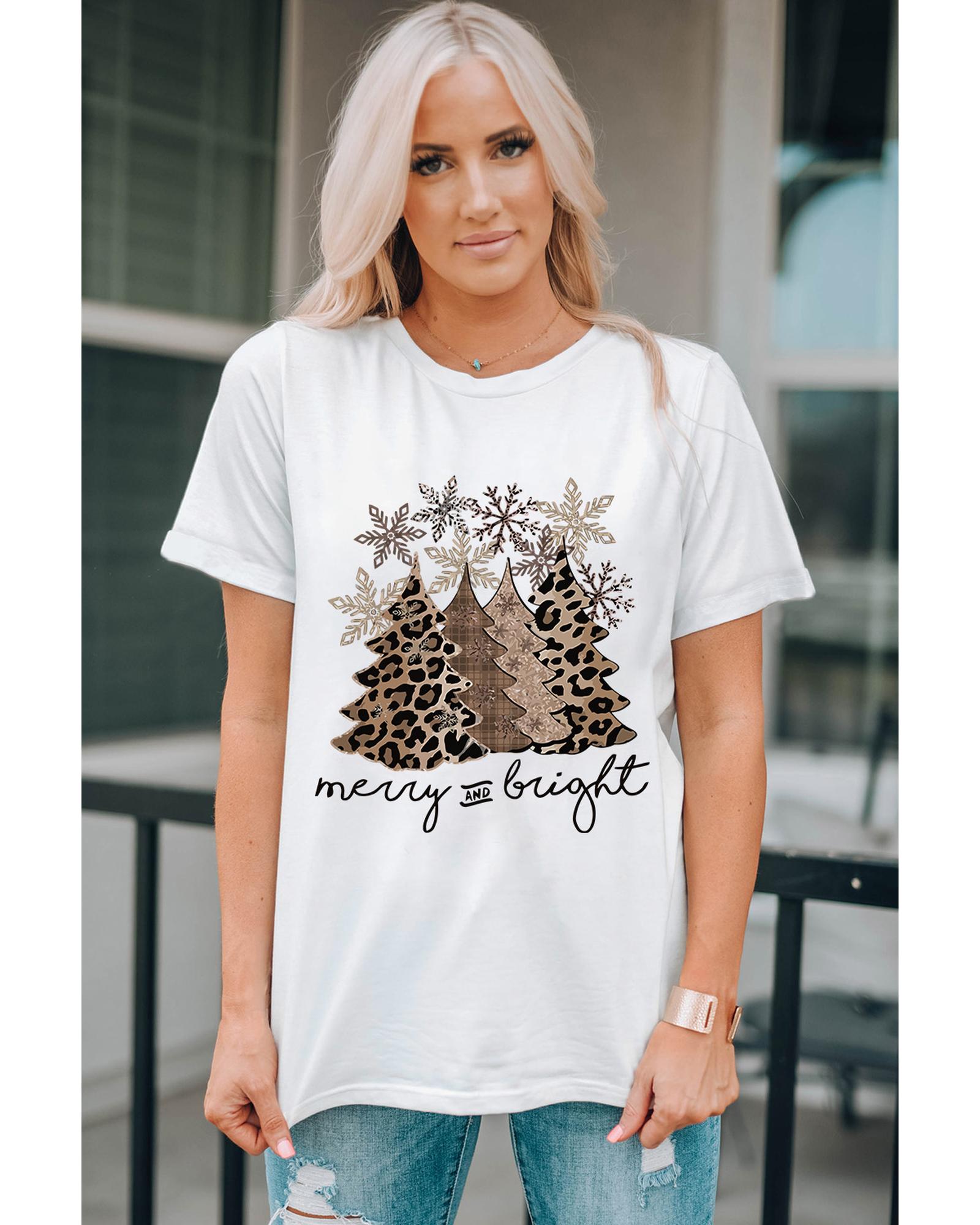 Azura Exchange Leopard Christmas Tree Graphic Print T-Shirt – S