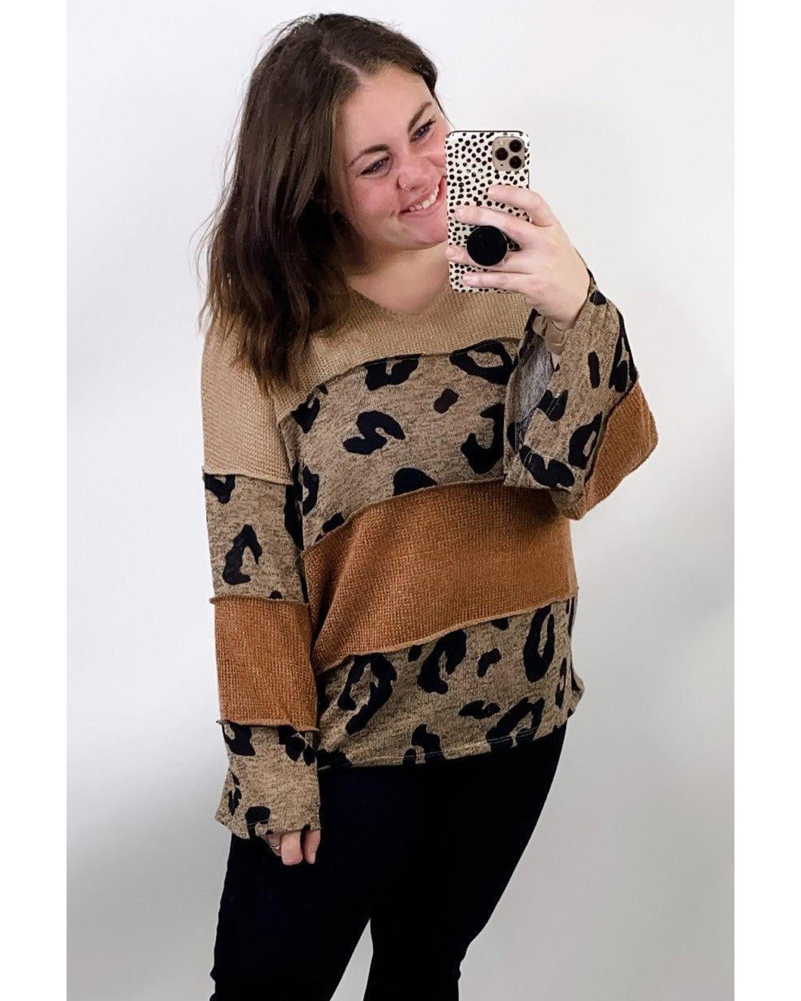 Azura Exchange Leopard Colorblock Patchwork Knit Top – M