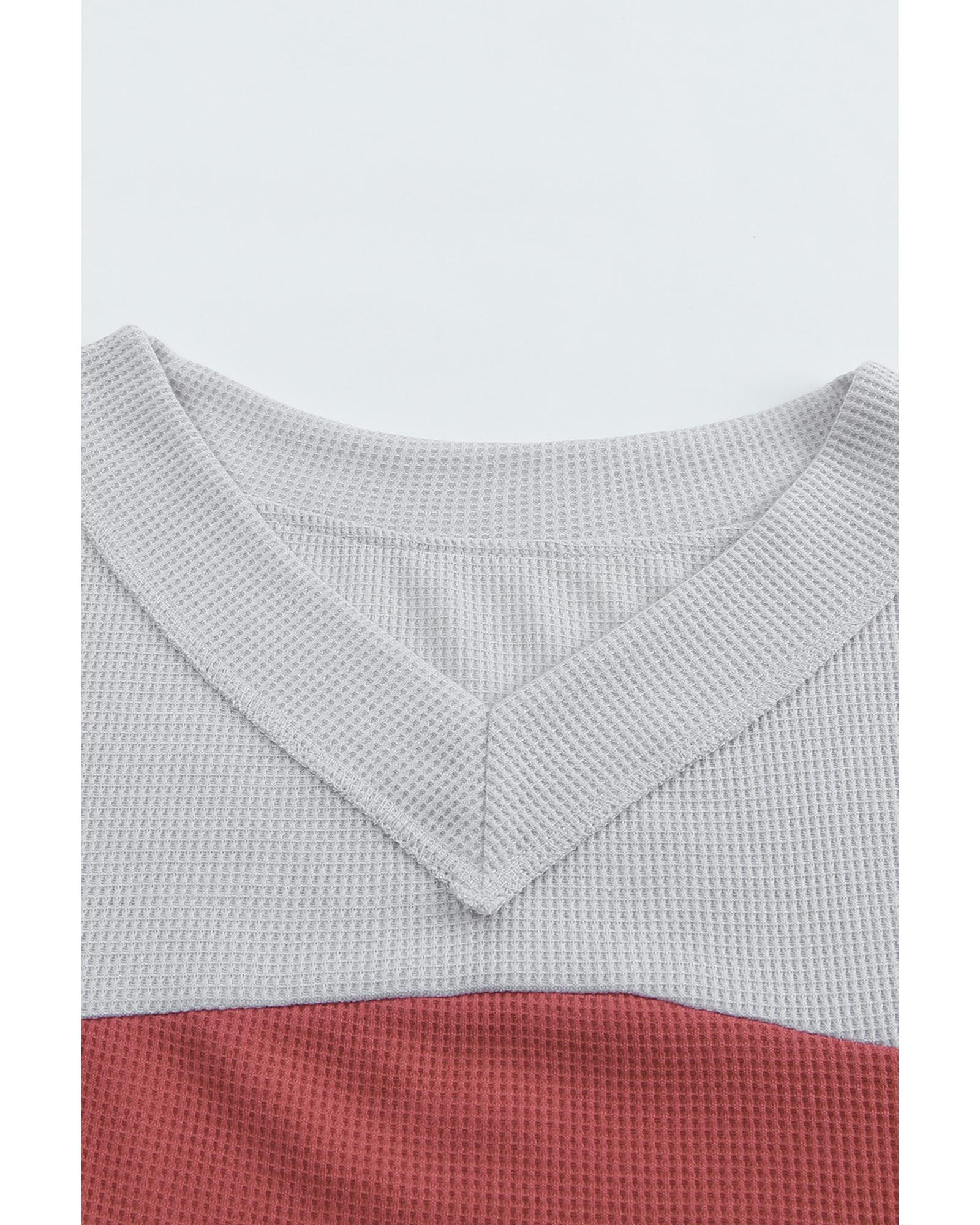 This stylish waffle knit top features a bold colorblock design with contrasting leopard print sleeves, making it a trendy addition to any casual wardrobe. Crafted from high-quality fabric, it offers both comfort and a fashionable look suitable for various occasions.