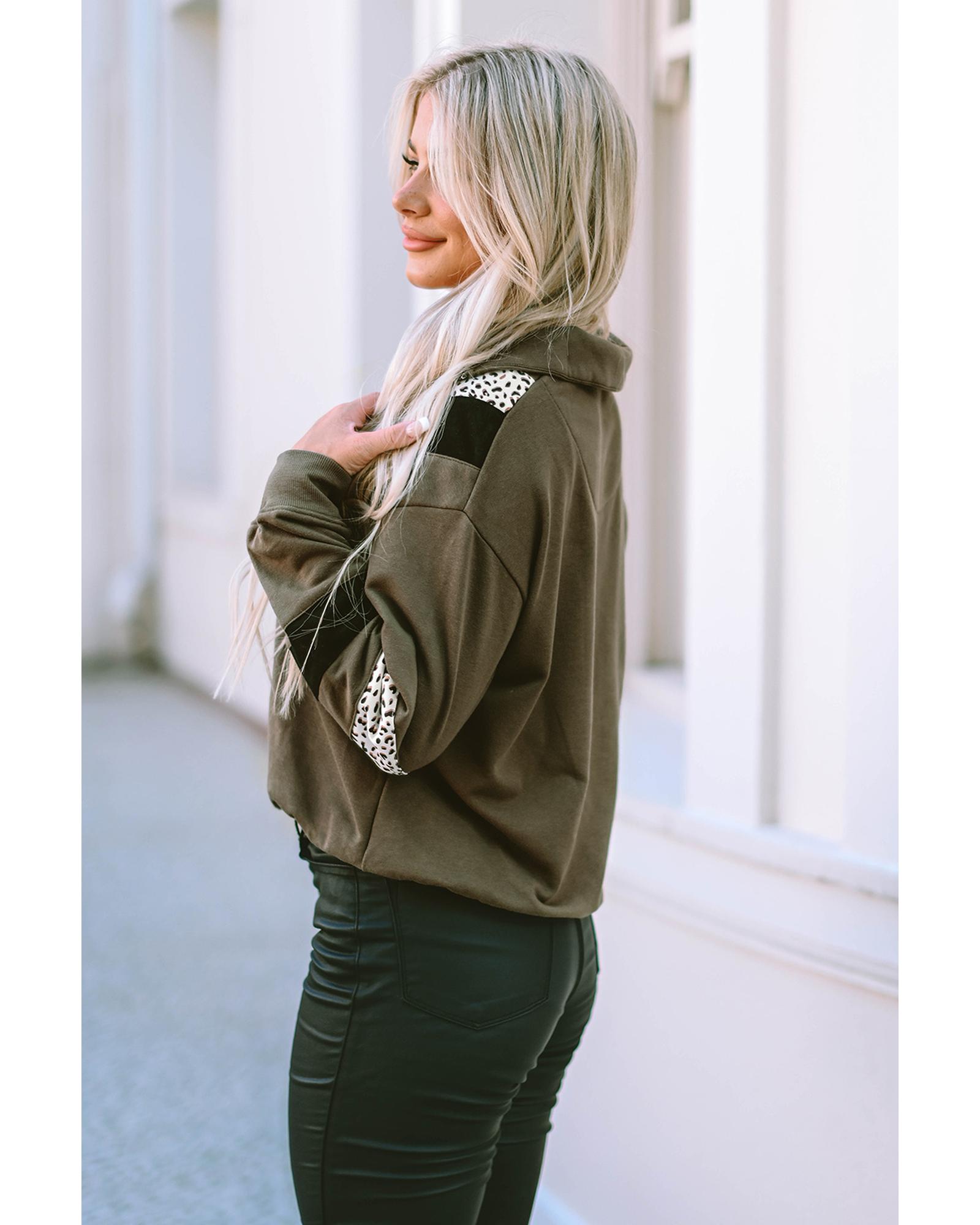 Azura Exchange Leopard Contrast Splicing Quarter Zip Sweatshirt – S