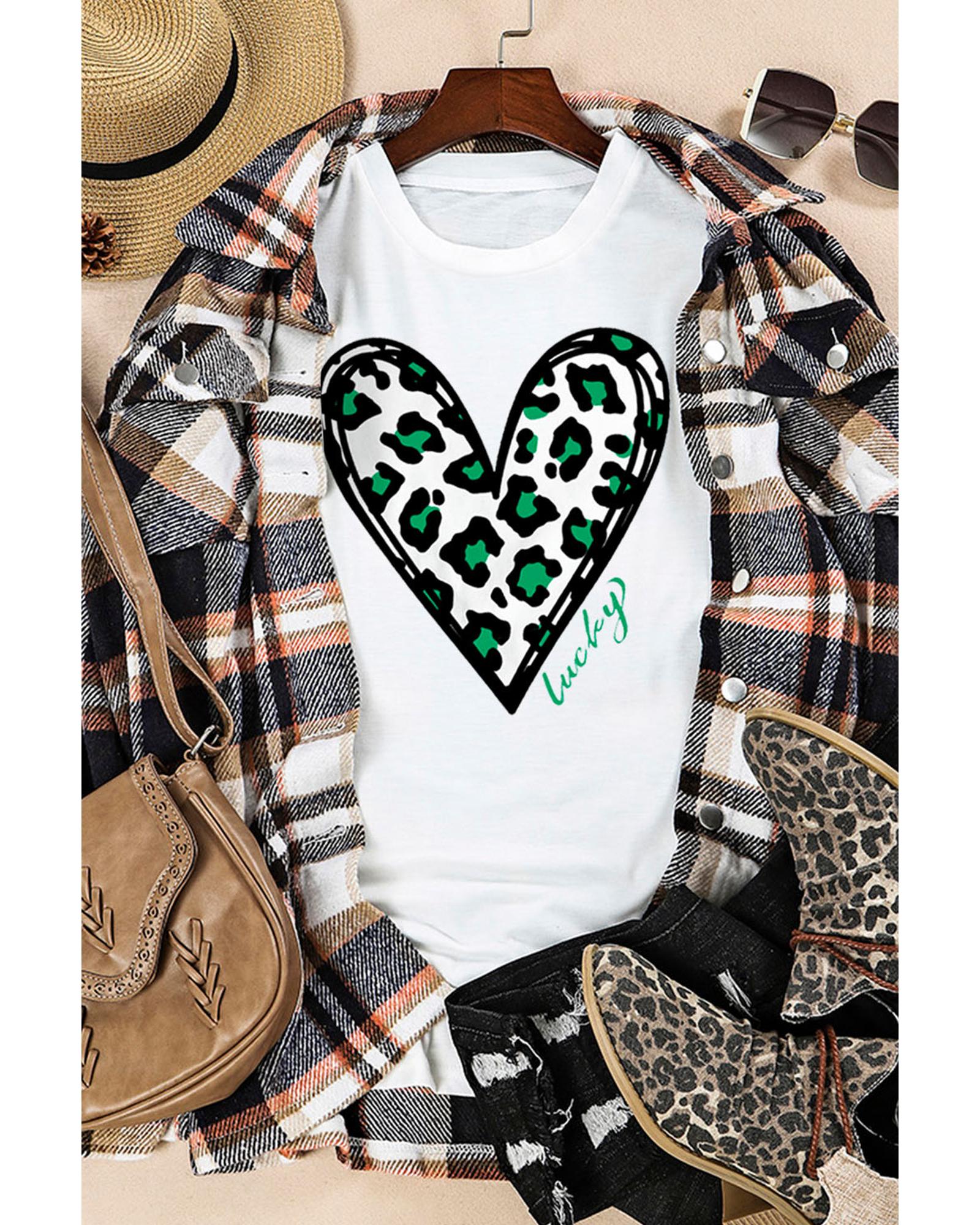 Azura Exchange Leopard Heart Print St Patricks Day T Shirt – XL