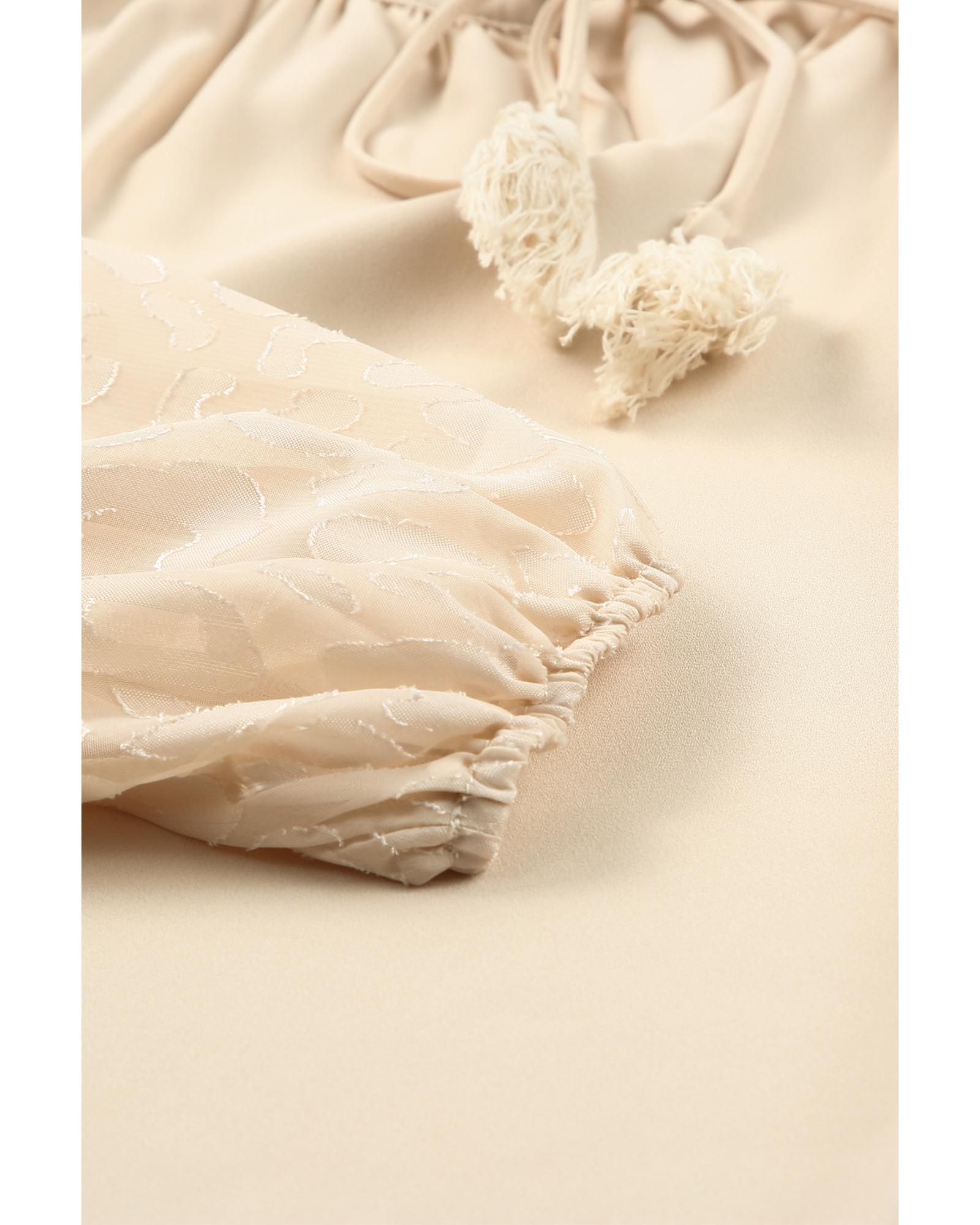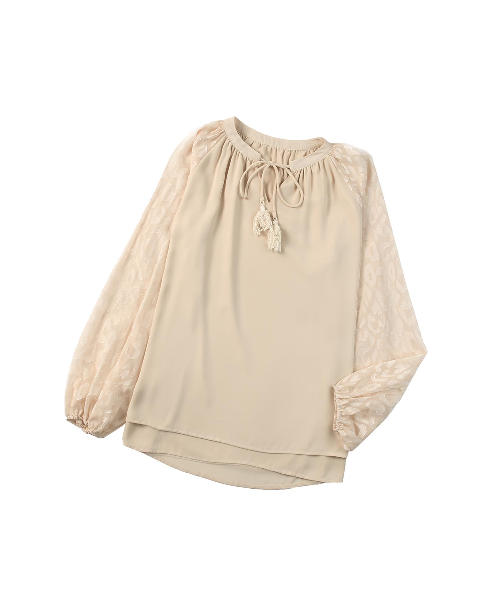 This blouse features a stylish leopard print design on a beige background, combining trendy fashion with comfort. It is suitable for both casual and formal occasions, making it a versatile addition to your wardrobe.