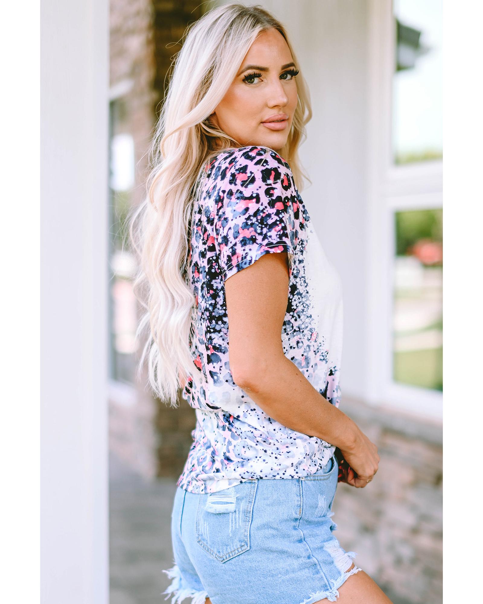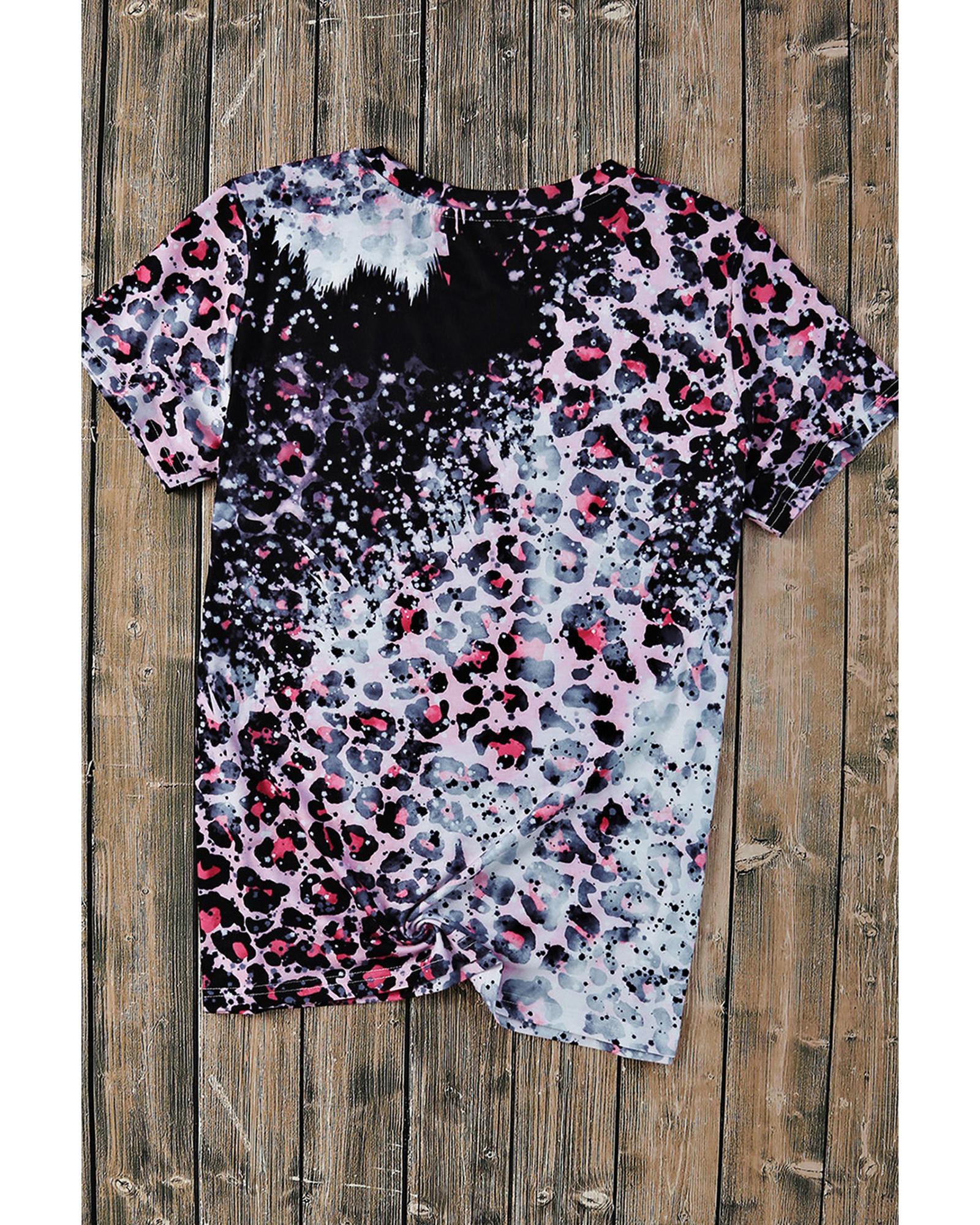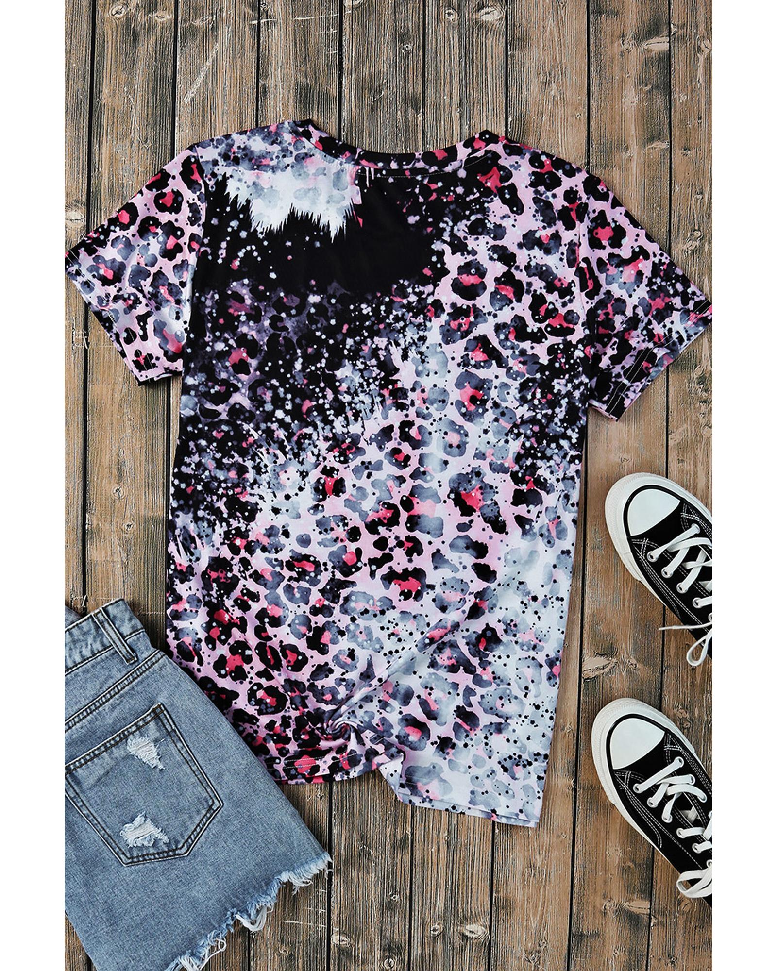 This leopard print bleached T-shirt offers a bold and trendy look, perfect for making a statement. Crafted from a comfortable and stretchy fabric, it provides a versatile addition to any wardrobe. The design is easy to pair with various bottoms, making it suitable for different casual occasions.