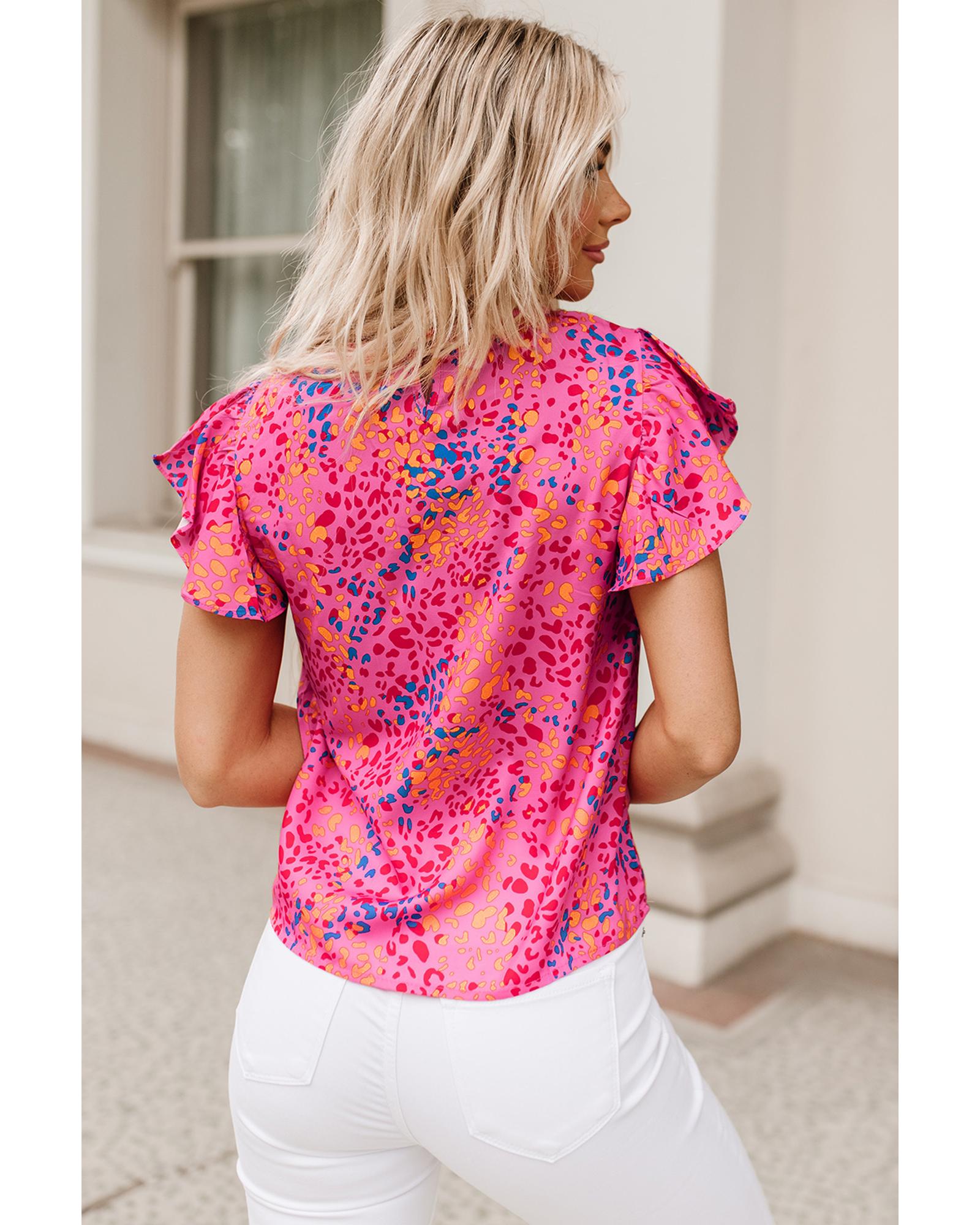 This blouse features a stylish leopard print design with a flattering V-neck and flutter sleeves, making it a versatile addition to any wardrobe. Crafted from quality materials, it offers both comfort and durability for various occasions.