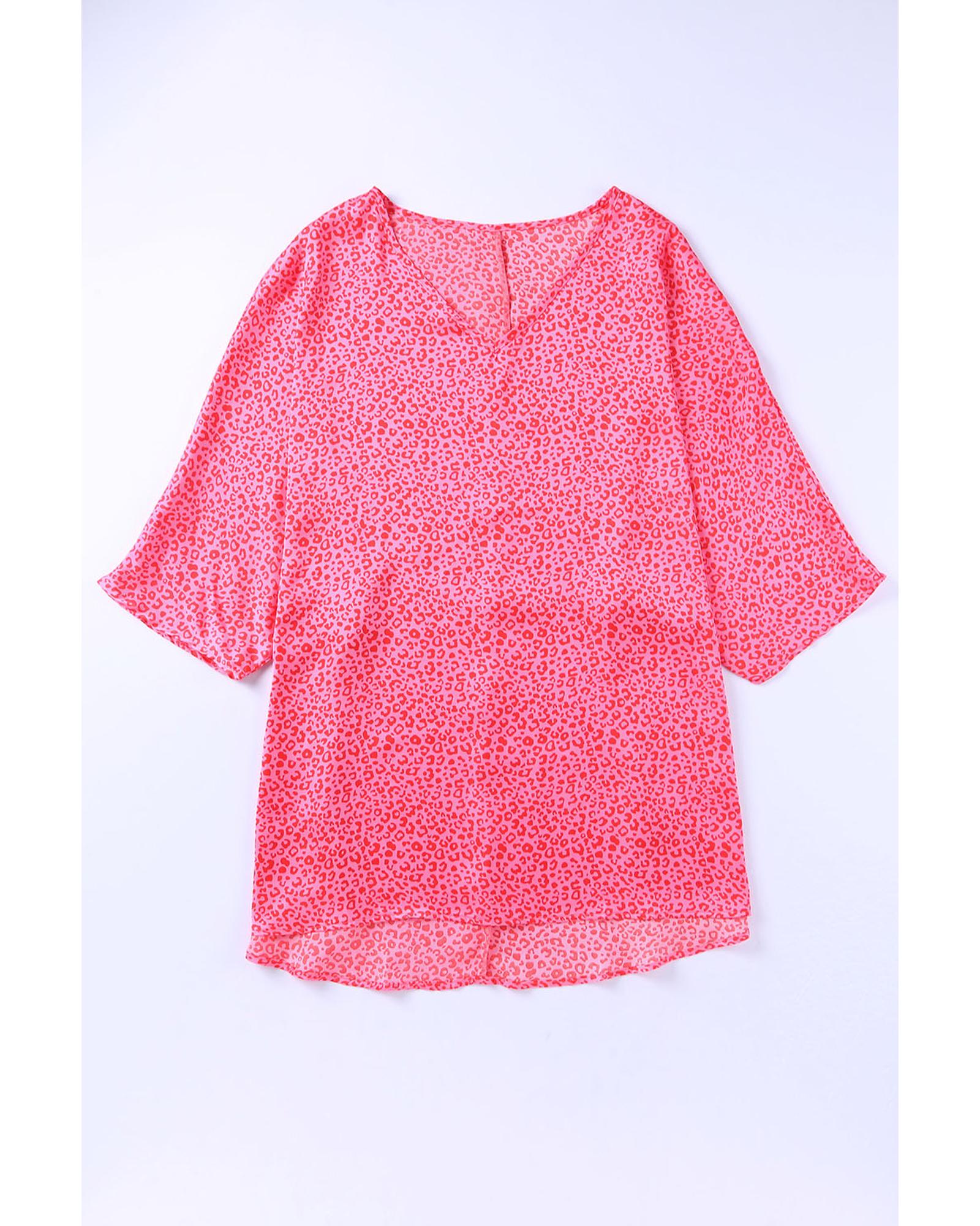 This oversized V-neck top features a bold leopard print design, offering a stylish and eye-catching look. Its relaxed fit provides comfort and ease of movement, making it suitable for various occasions. The flattering V-neckline and half sleeves add to its fashionable appeal, while the high-quality materials ensure durability and comfort.