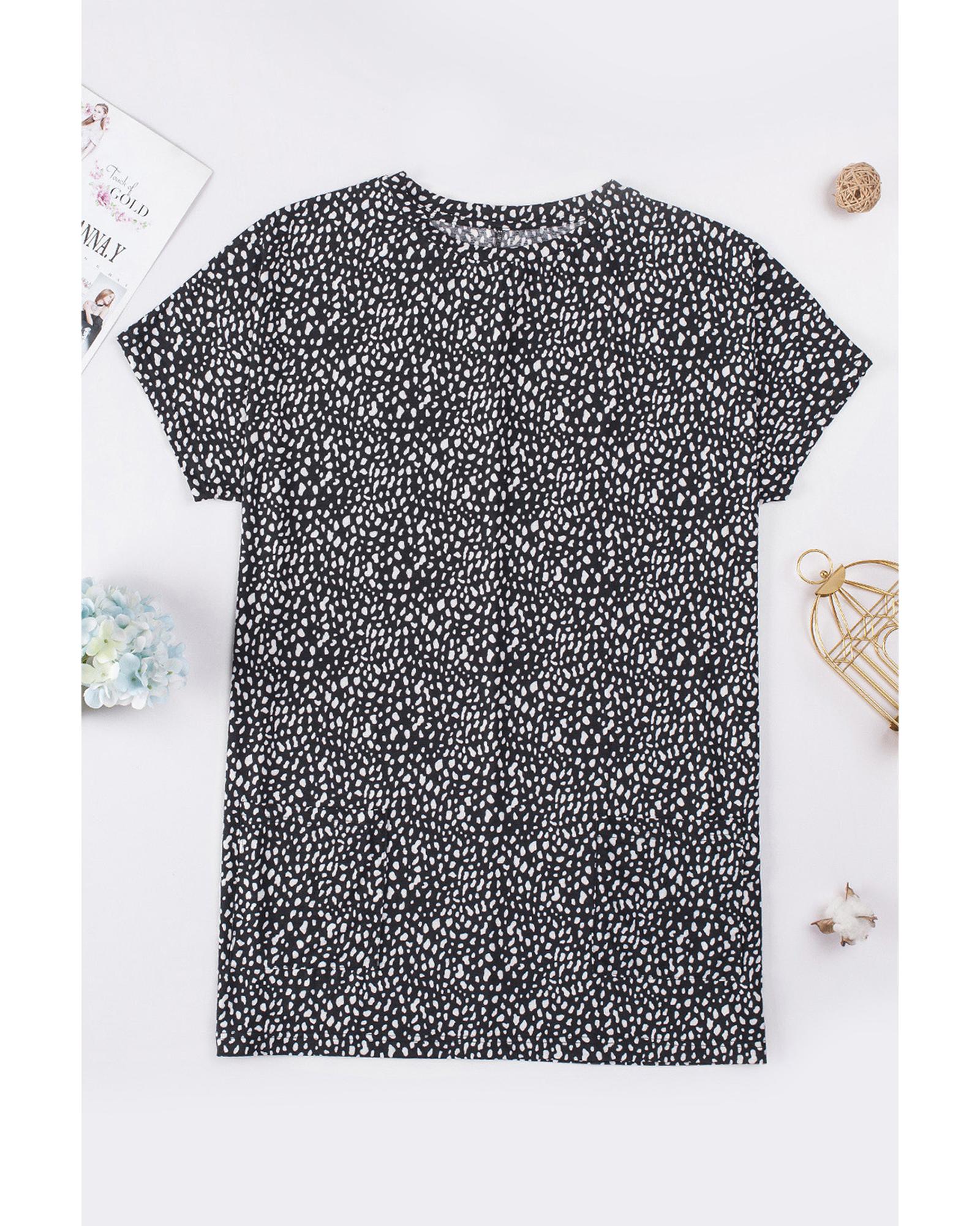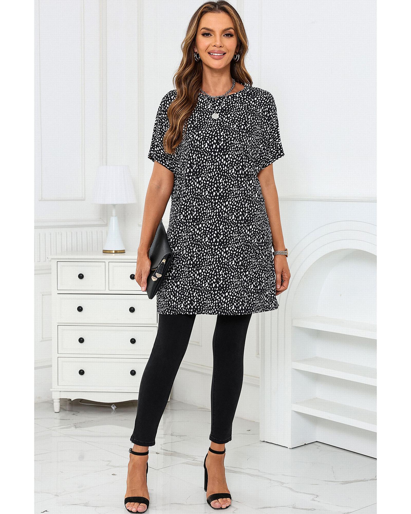 This leopard print tunic top features a bold and stylish design with convenient side pockets. Crafted from quality materials, it offers a comfortable fit suitable for all-day wear. Its versatile style makes it an excellent addition to any wardrobe.