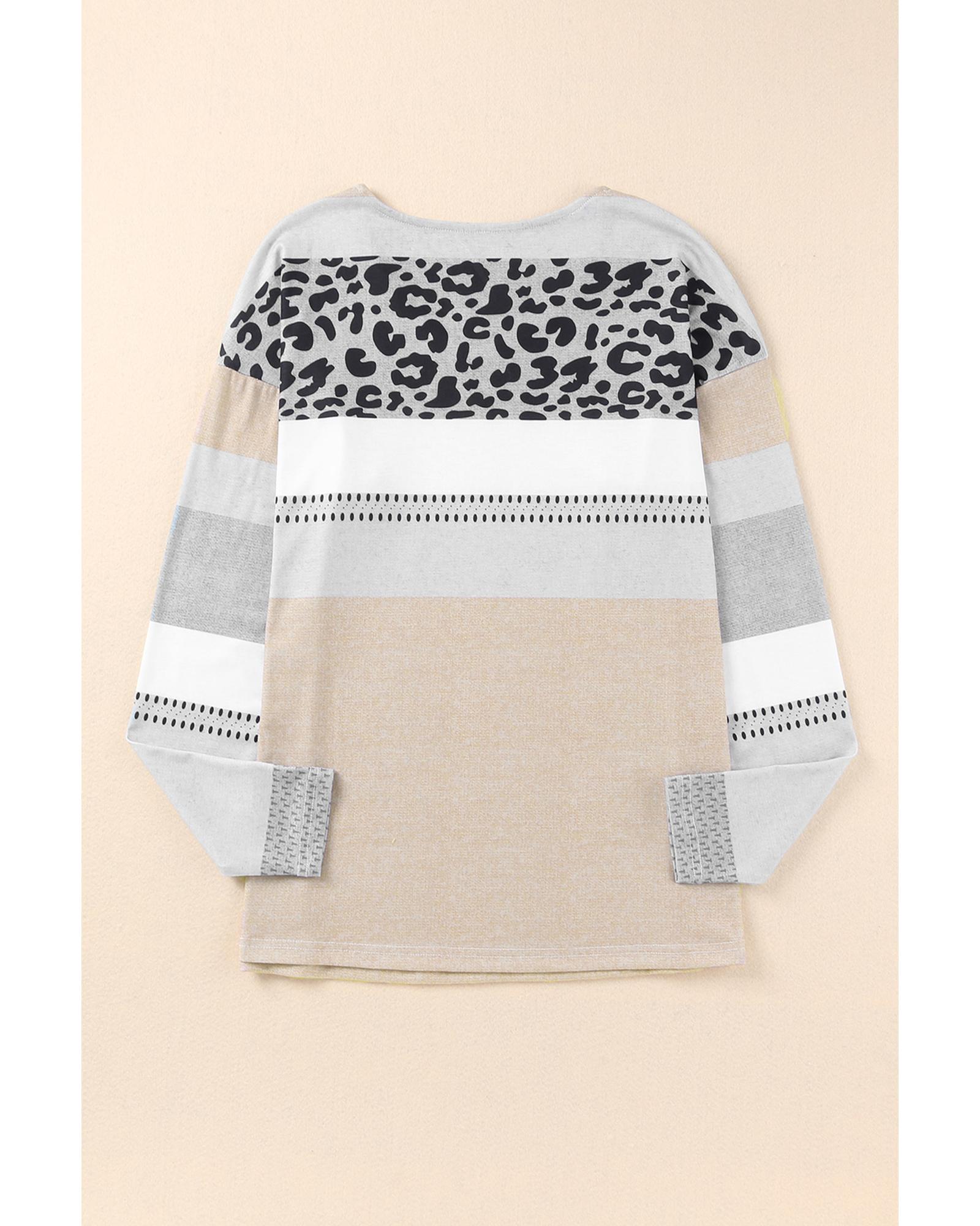 This leopard print V-neck top offers a stylish and versatile addition to your wardrobe. Crafted from quality materials, it combines comfort with a fashionable design suitable for various occasions.