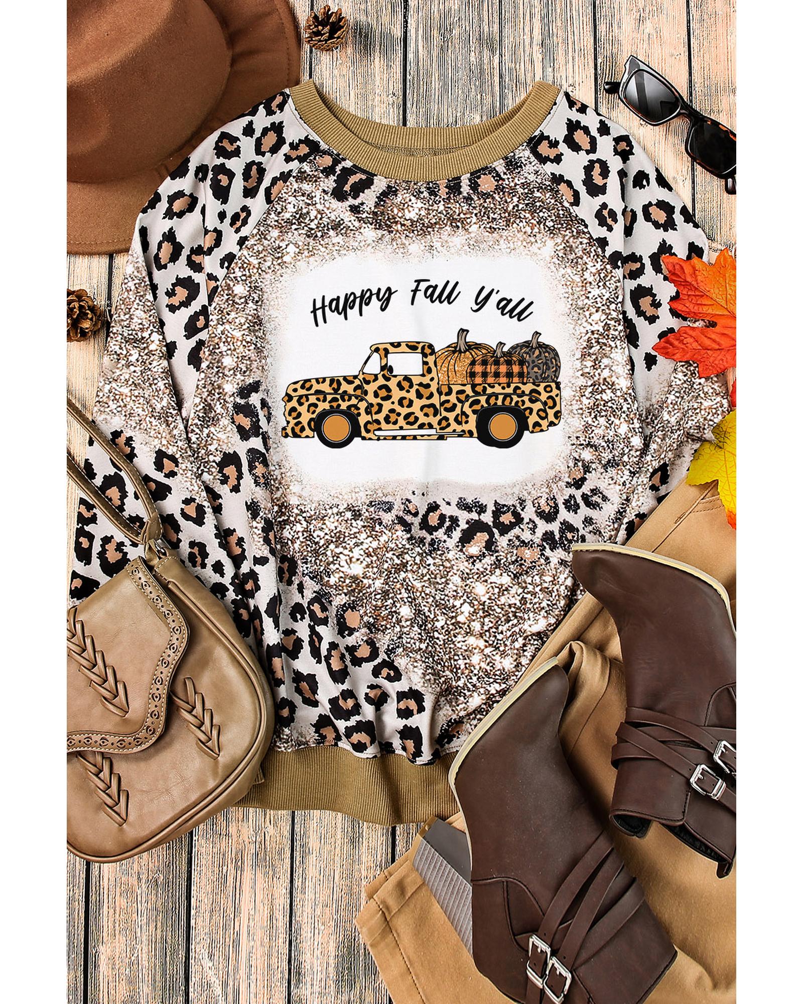 This stylish women’s top features a unique leopard tie-dye pattern combined with a playful pumpkin truck graphic on the front. Designed for comfort and warmth, it is ideal for cooler weather and versatile enough to be paired with jeans or leggings.