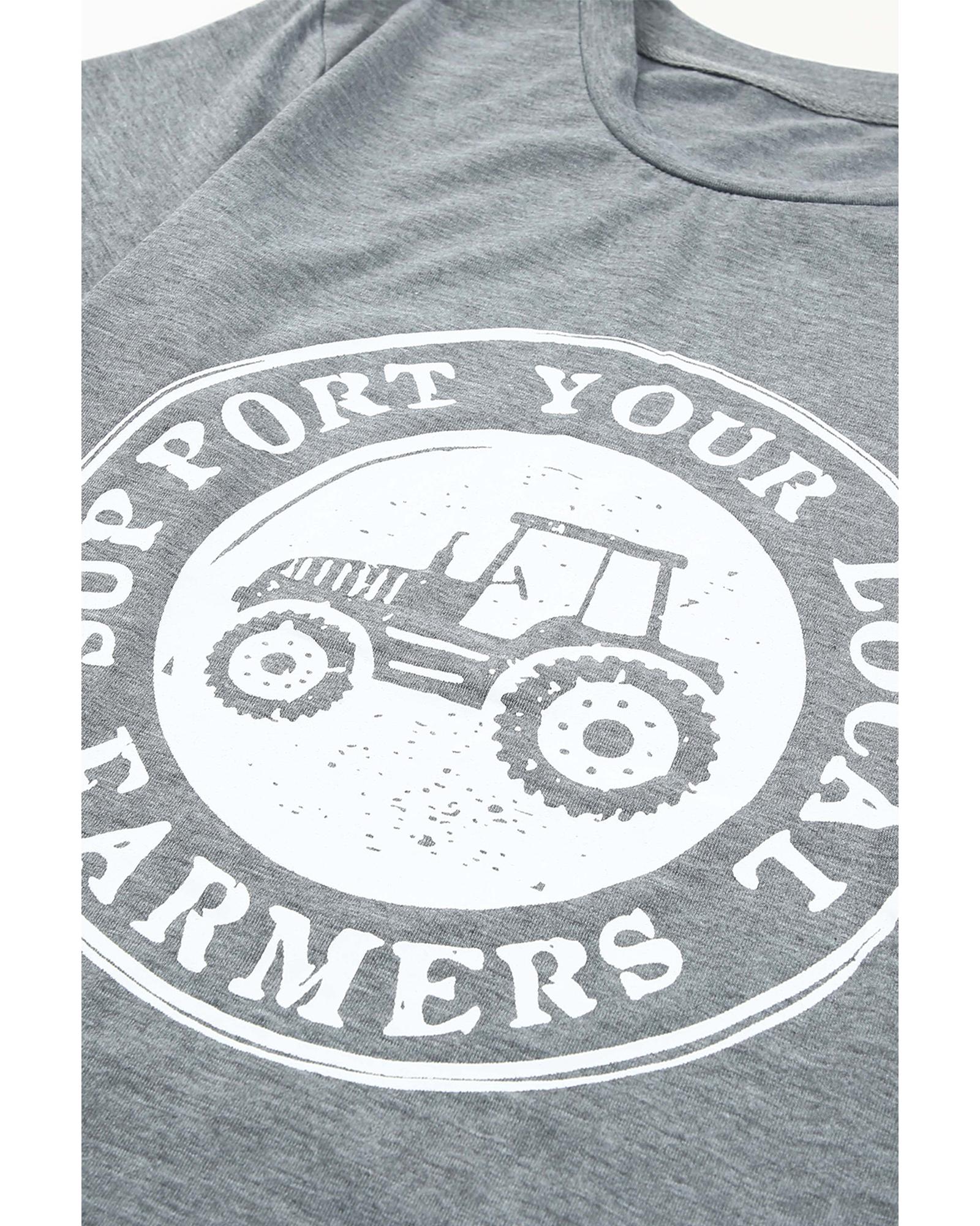 This graphic tee is designed to promote support for local farmers while offering a comfortable and versatile option for casual wear. It features a bold graphic print on the front, making it suitable for trendy and everyday outfits.