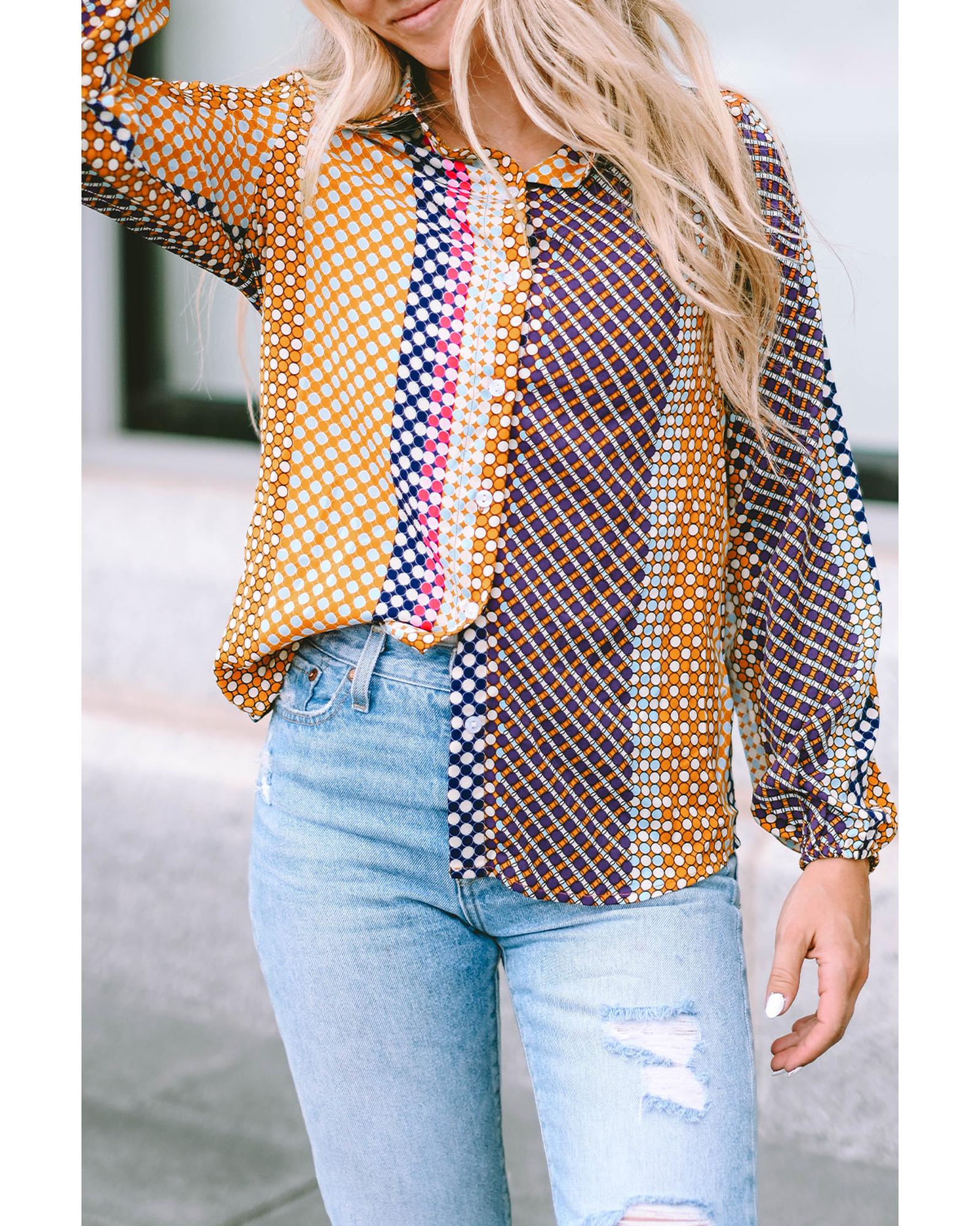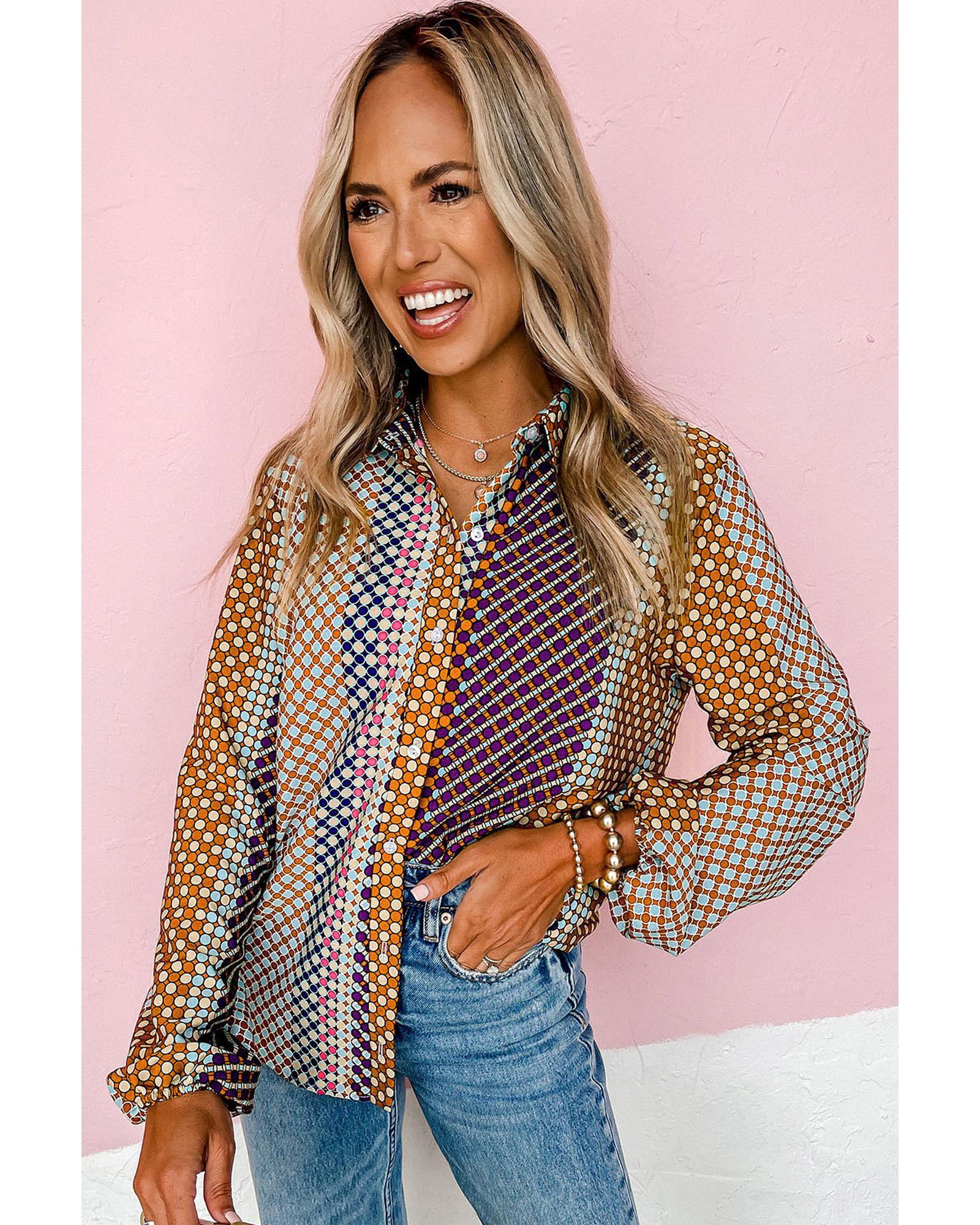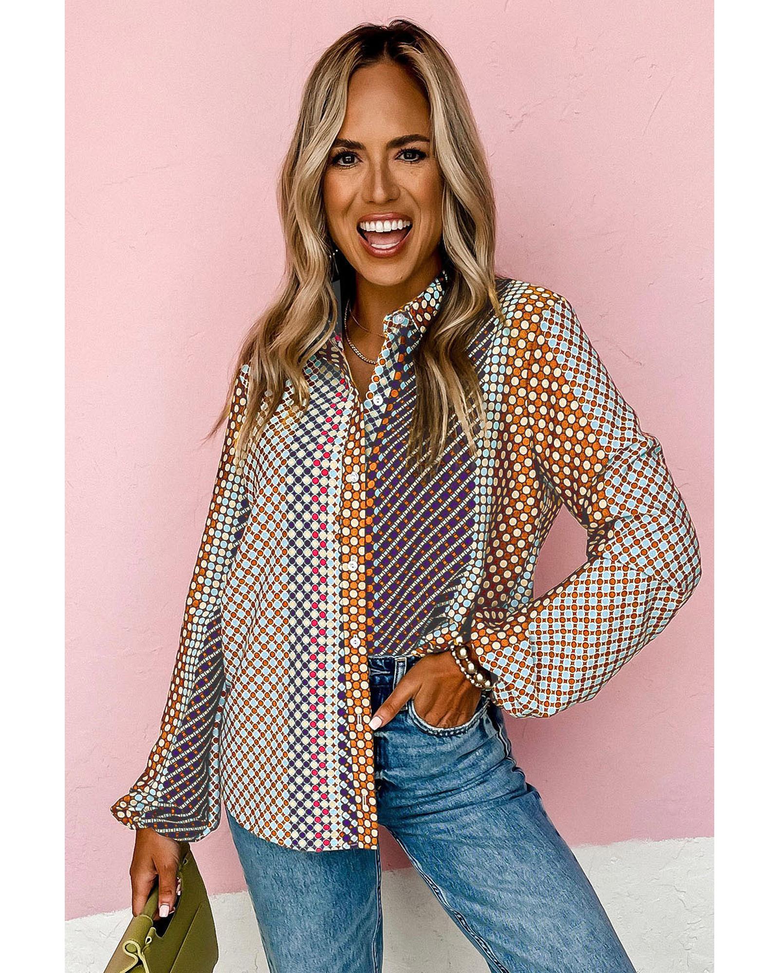 This long sleeve dot print button down shirt offers a stylish and versatile addition to any wardrobe. Designed with an elegant dot pattern, it combines a flattering fit with a classic button-down closure, making it suitable for both casual and formal occasions.