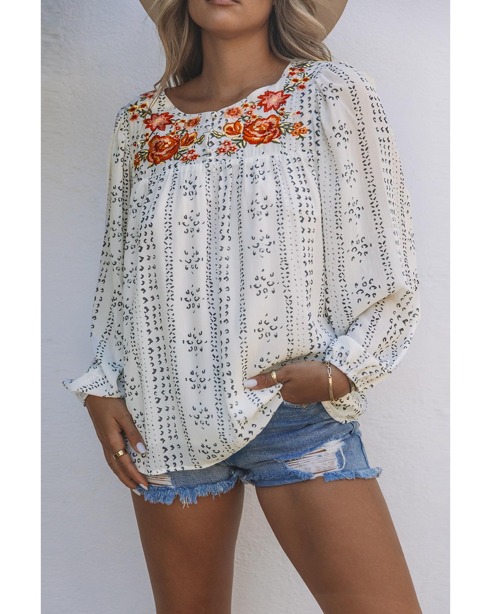 Azura Exchange Long Sleeve Embroidered Print Blouse – S