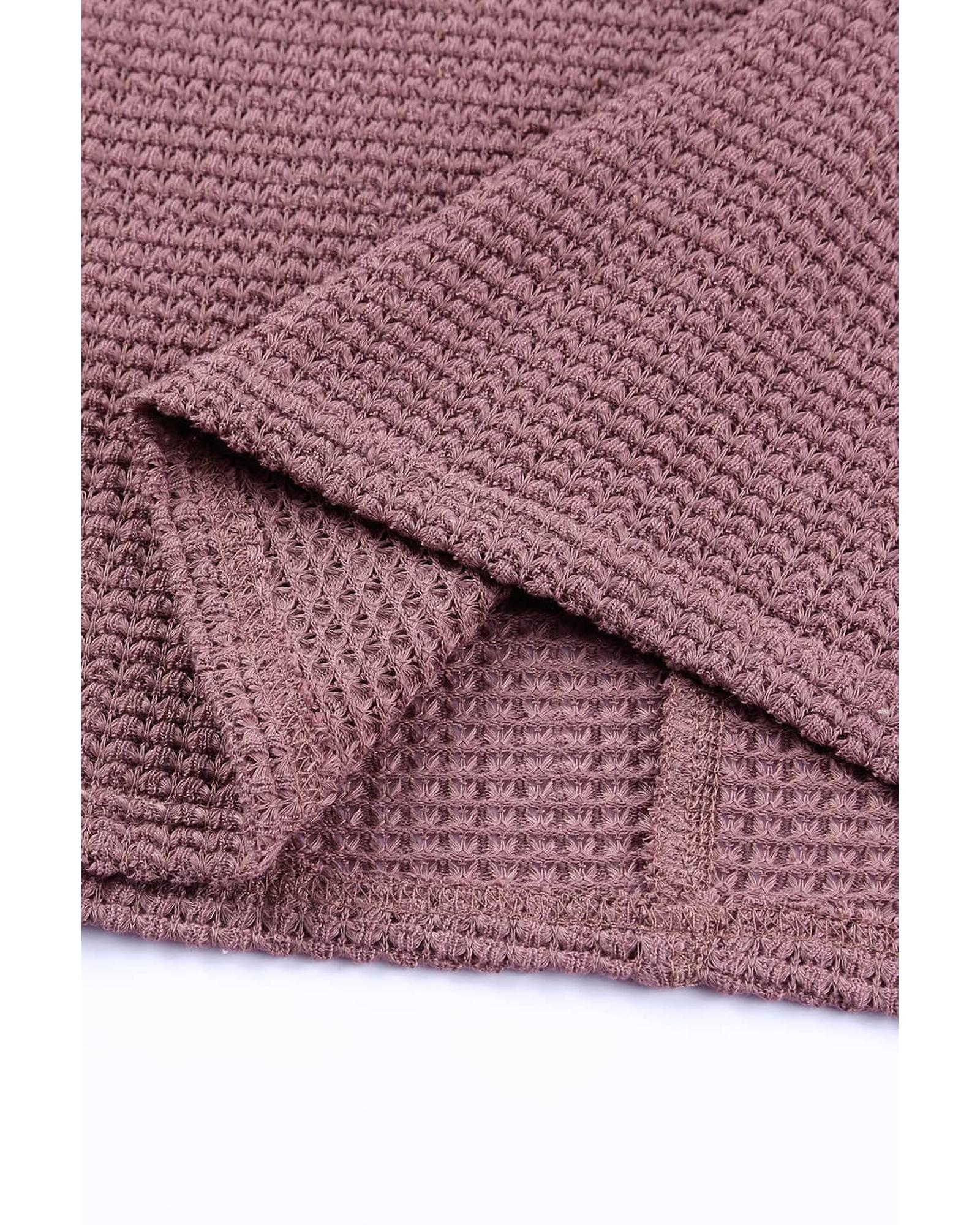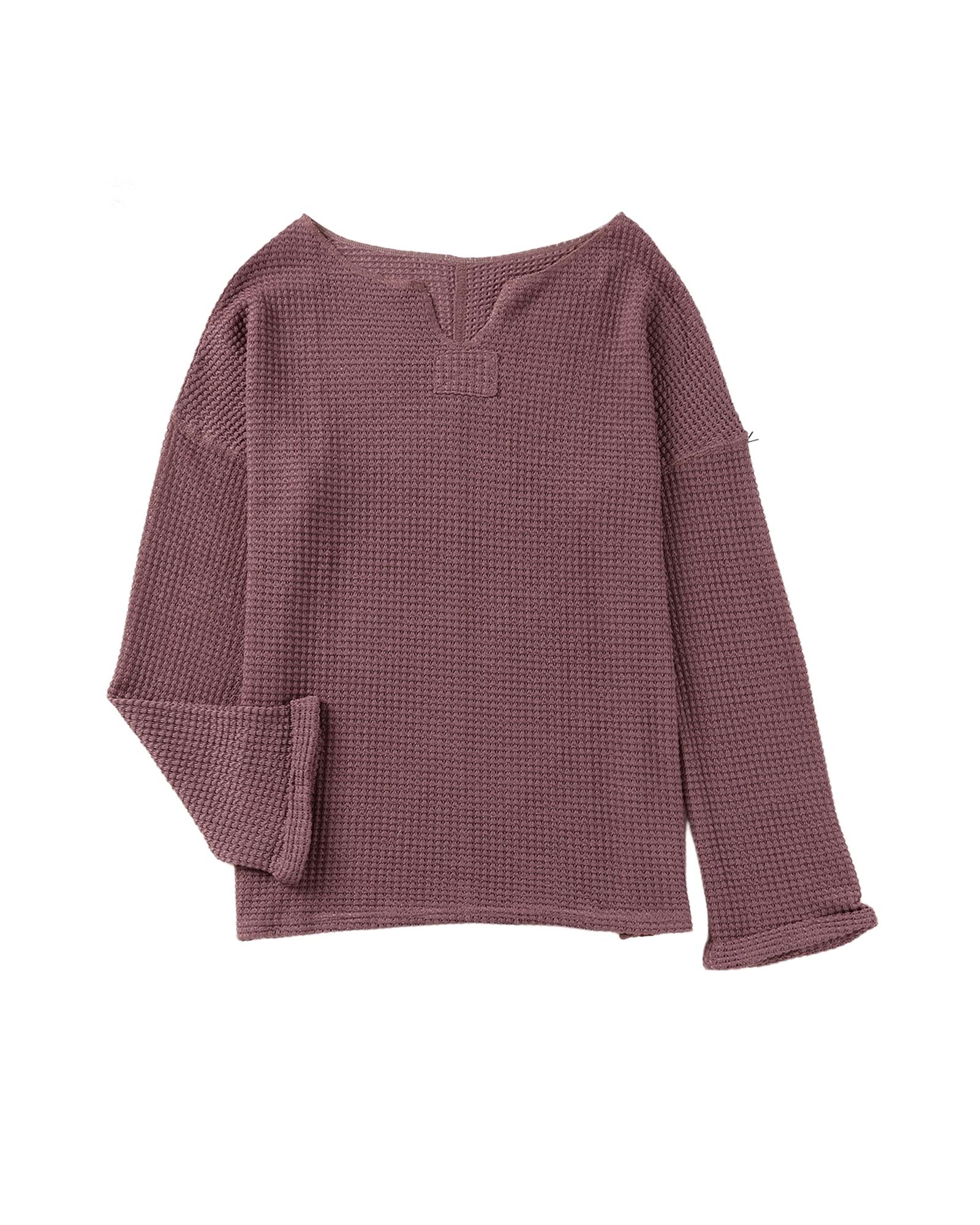 This luxurious waffle knit long sleeve top offers a comfortable and relaxed fit, making it a versatile addition to any wardrobe. Its textured waffle knit design adds visual interest, perfect for cooler days or evenings.