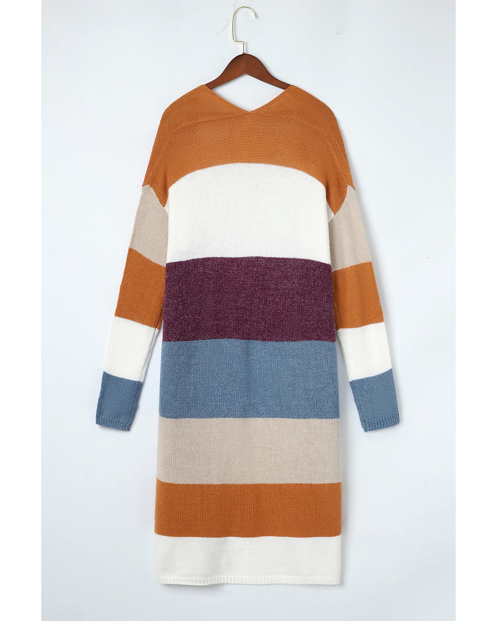 Azura Exchange Multicolor Colorblock Open Front Long Knit Cardigan – M