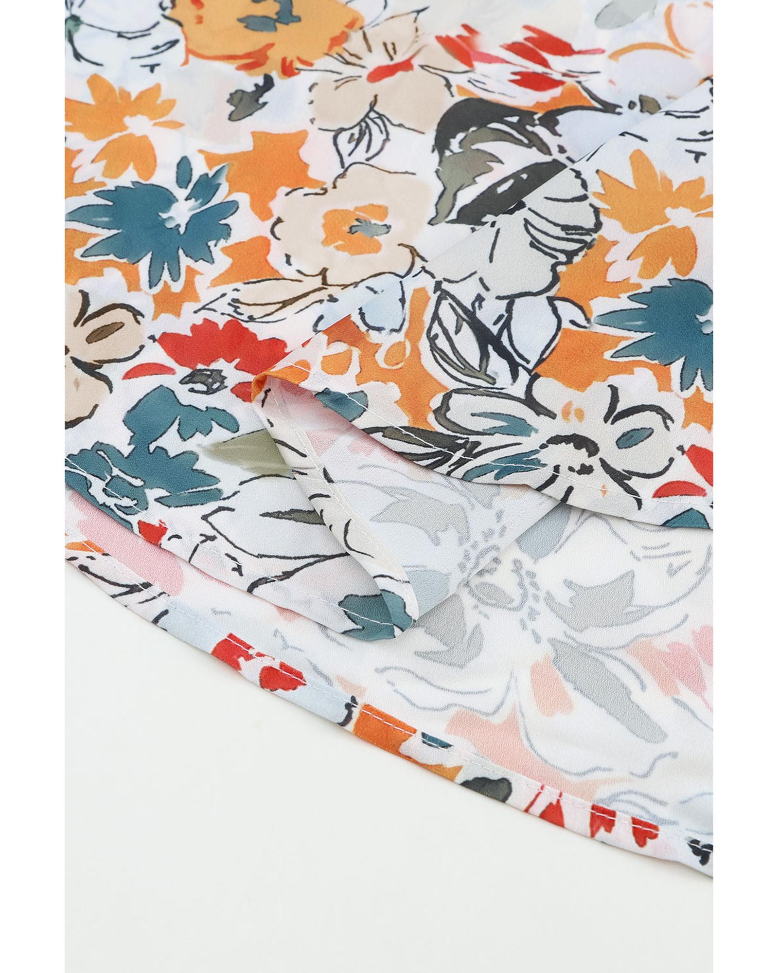 Azura Exchange Multicolor Split V Neck Flower Print Blouse – S
