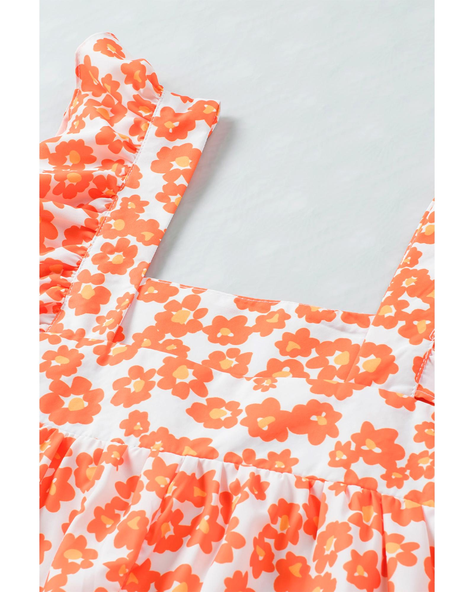Azura Exchange Orange Floral Print Square Neck Ruffle Tank Top – XL