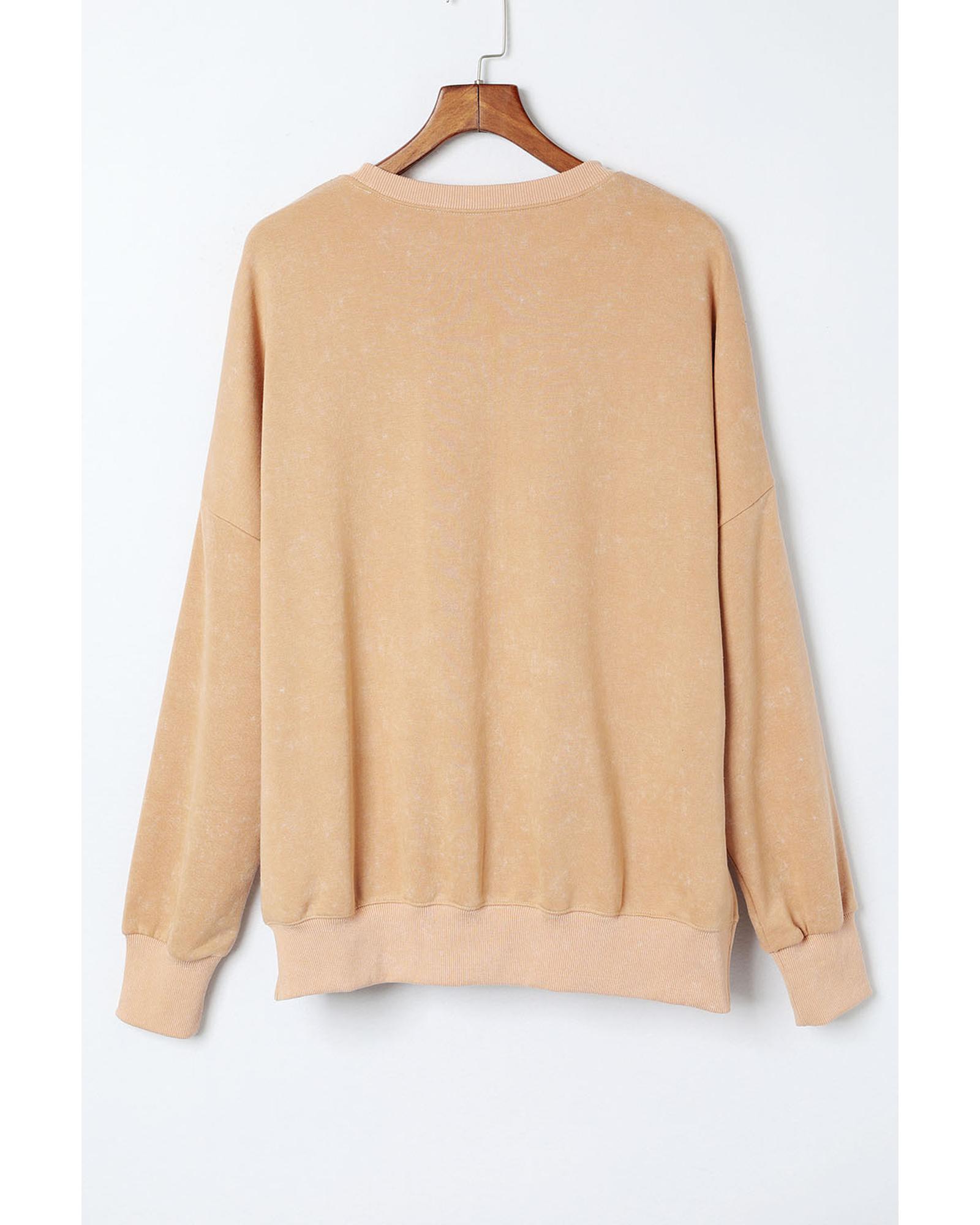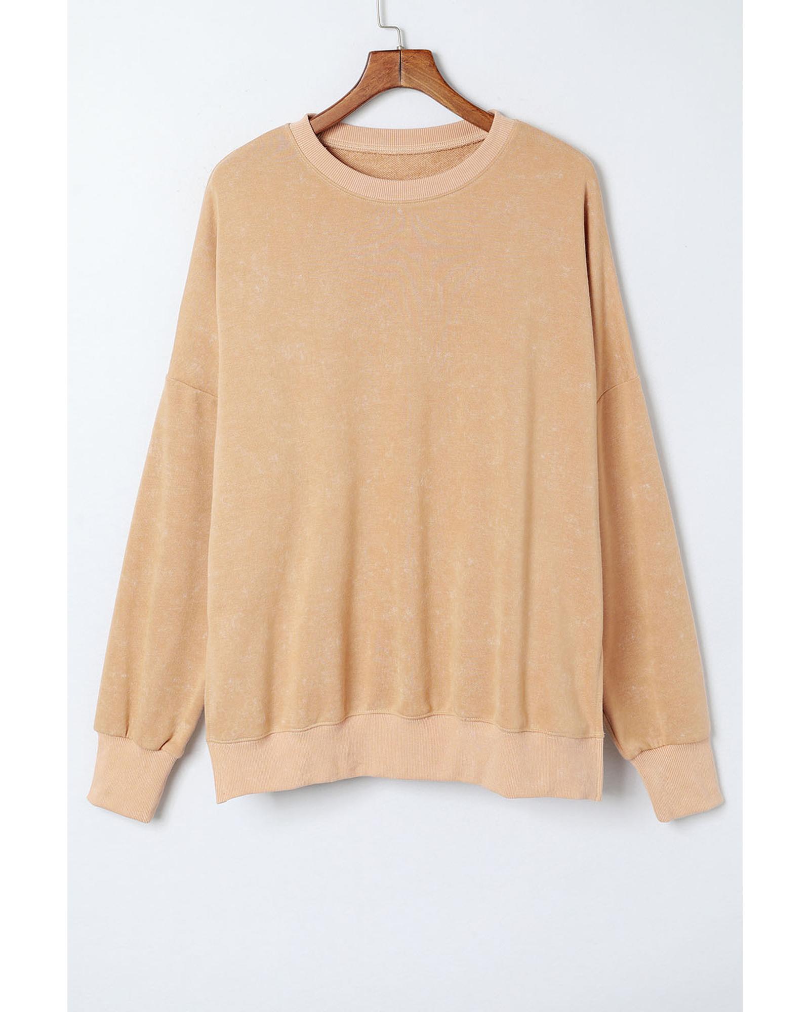 This oversized khaki sweatshirt features a relaxed fit with a trendy drop shoulder design. It is crafted with ribbed trim details on the cuffs and hem, offering both comfort and style. Made from high-quality materials, it is ideal for casual wear and versatile for various outfits.