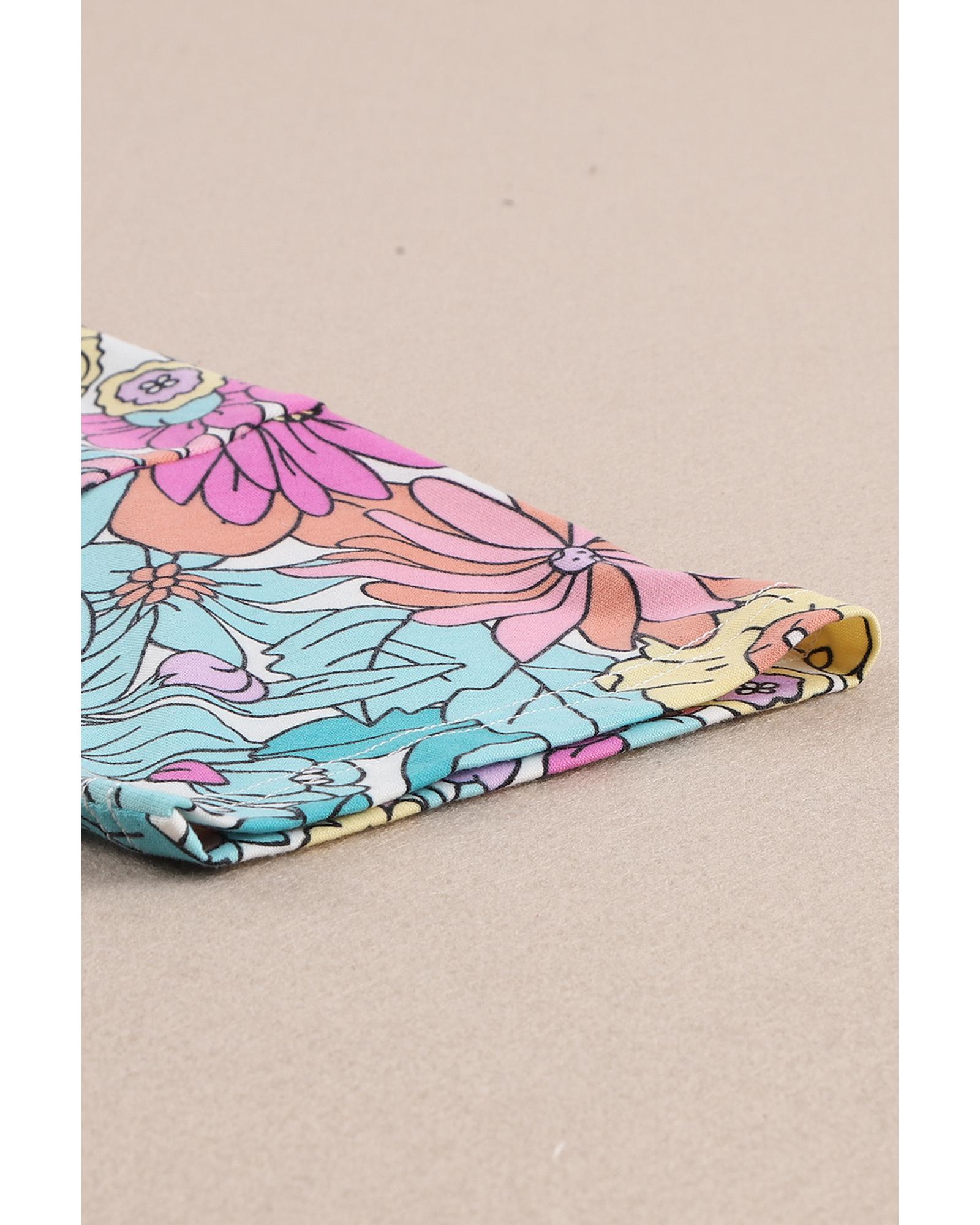 - 1 x Floral Print Patchwork Short Sleeve Top