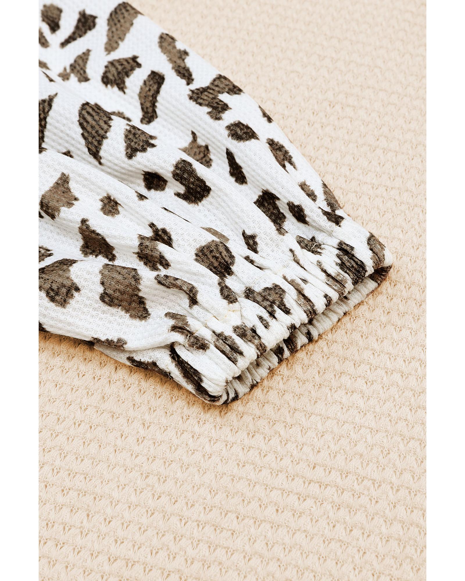This patchwork leopard print lantern sleeve top combines stylish design with comfortable fabric, making it a versatile addition to any wardrobe. The unique pattern and relaxed fit provide a fashionable look suitable for various occasions.