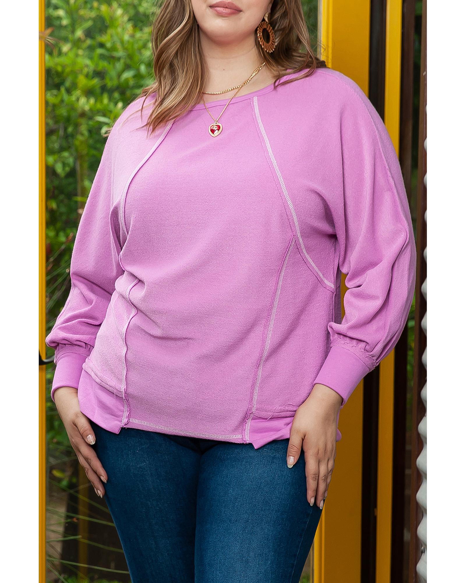 - Plus size long sleeve top with exposed seam details